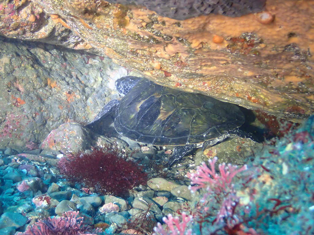 ちょうどアオウミガメがお出かけするところでした。