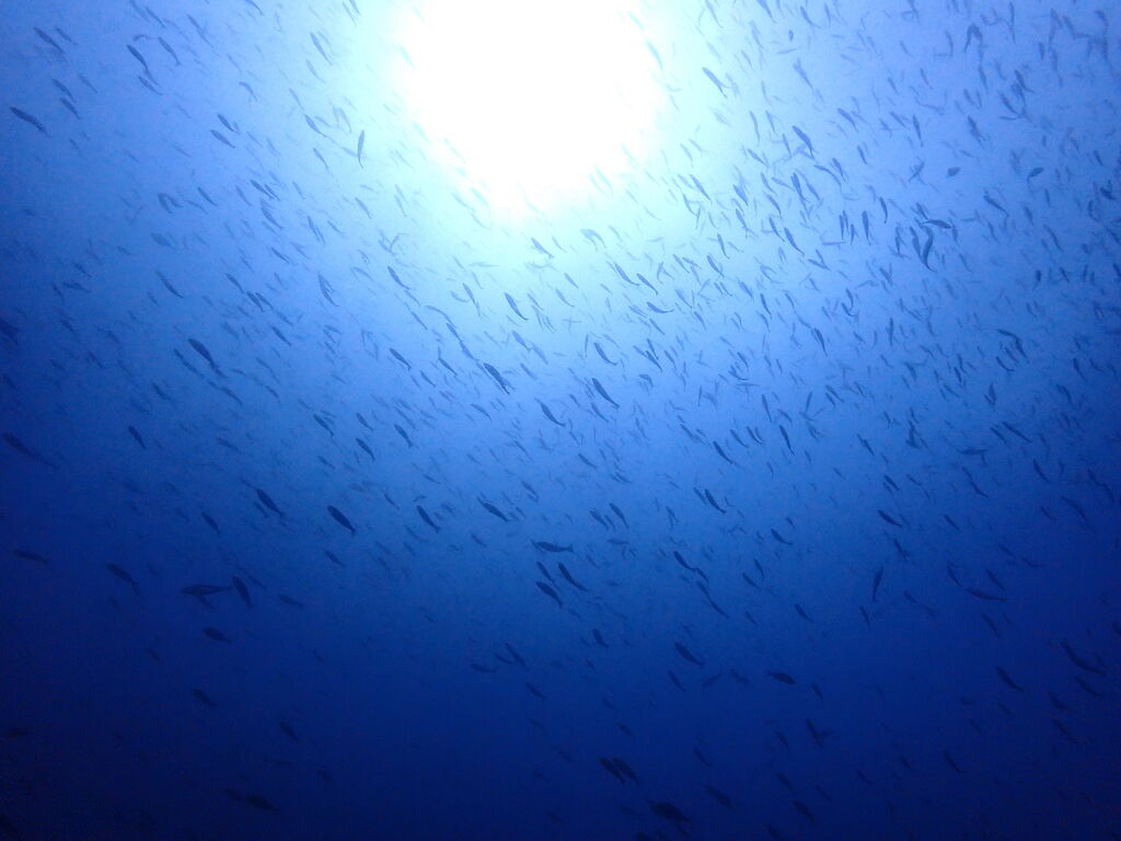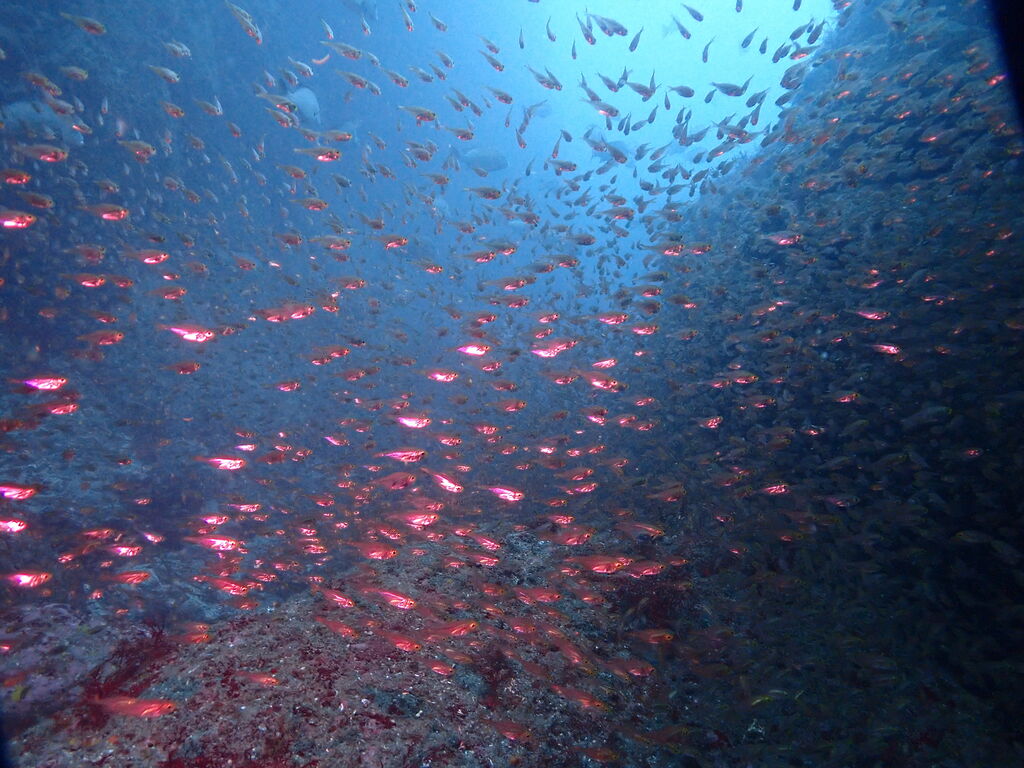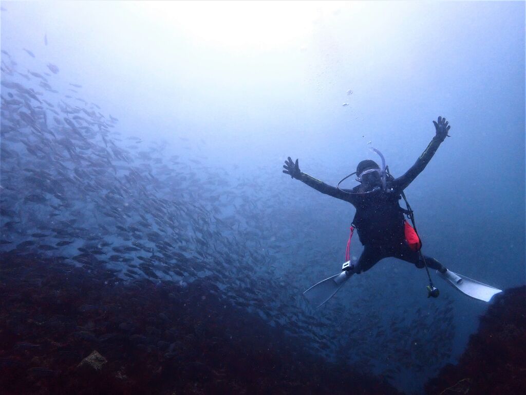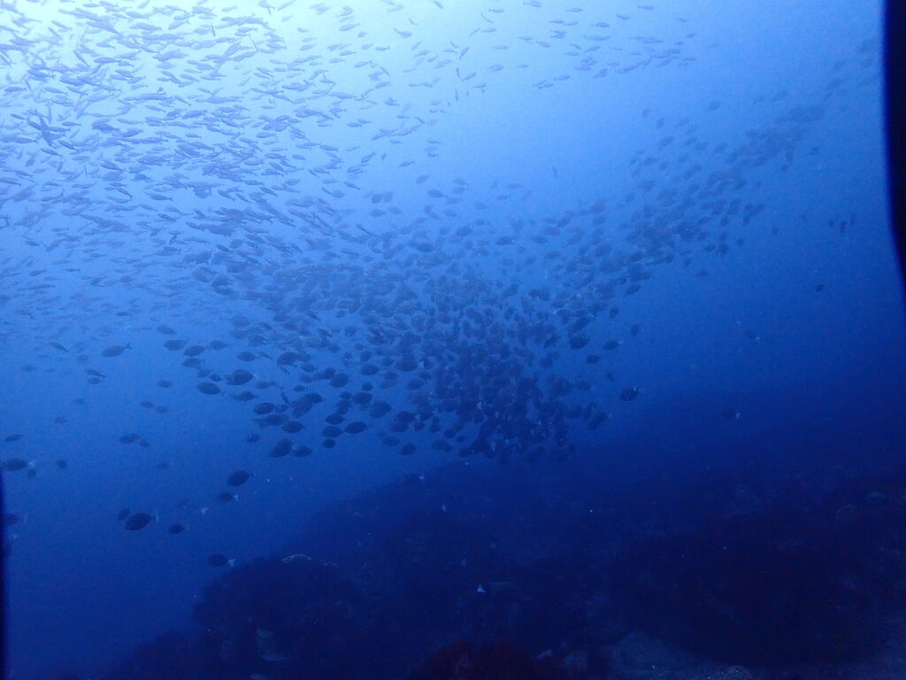 見上げると頭上に今度は大きなカンパチの群れ。ゆっくりと北へ向かっていました。