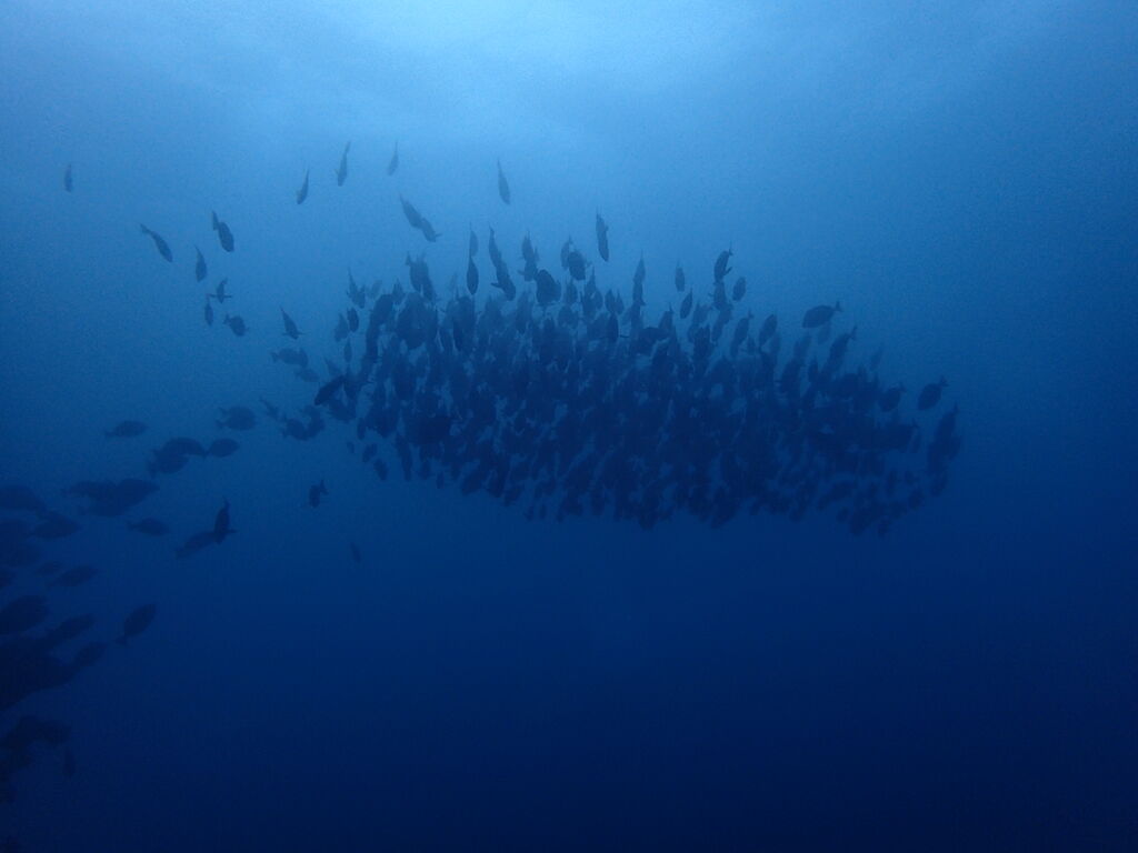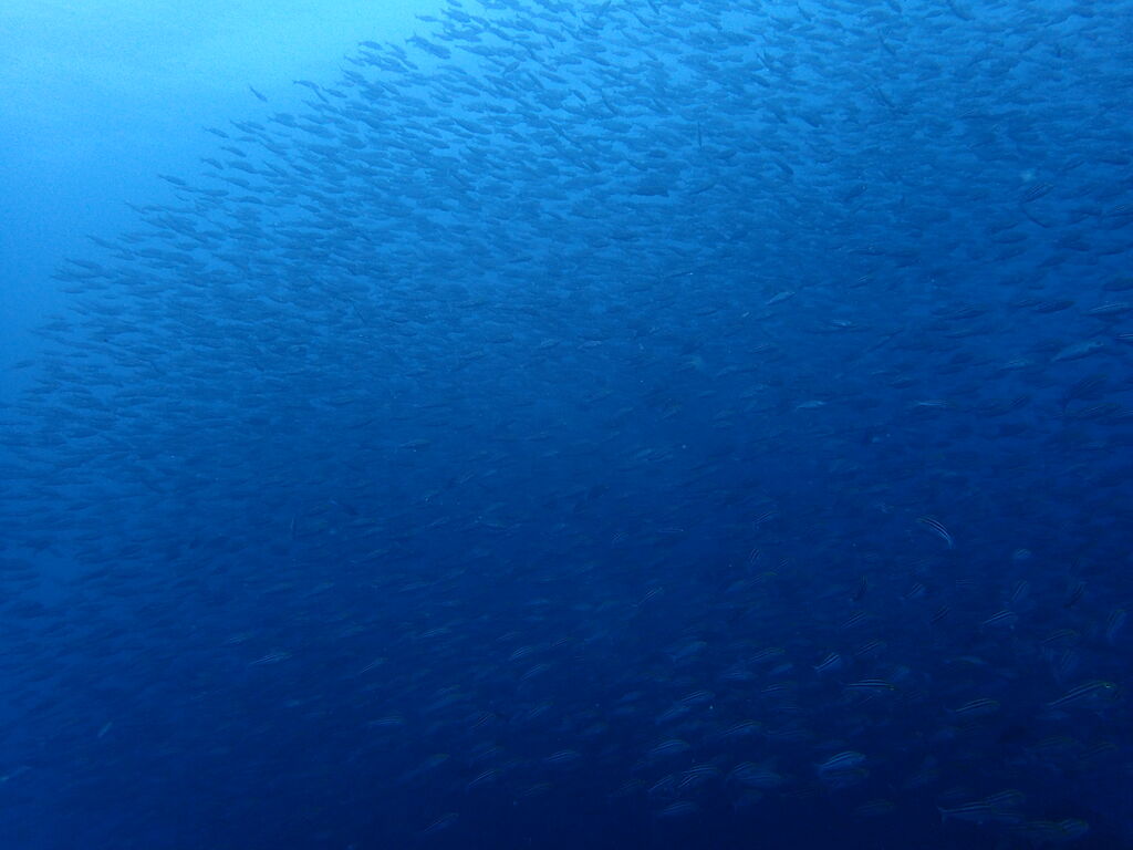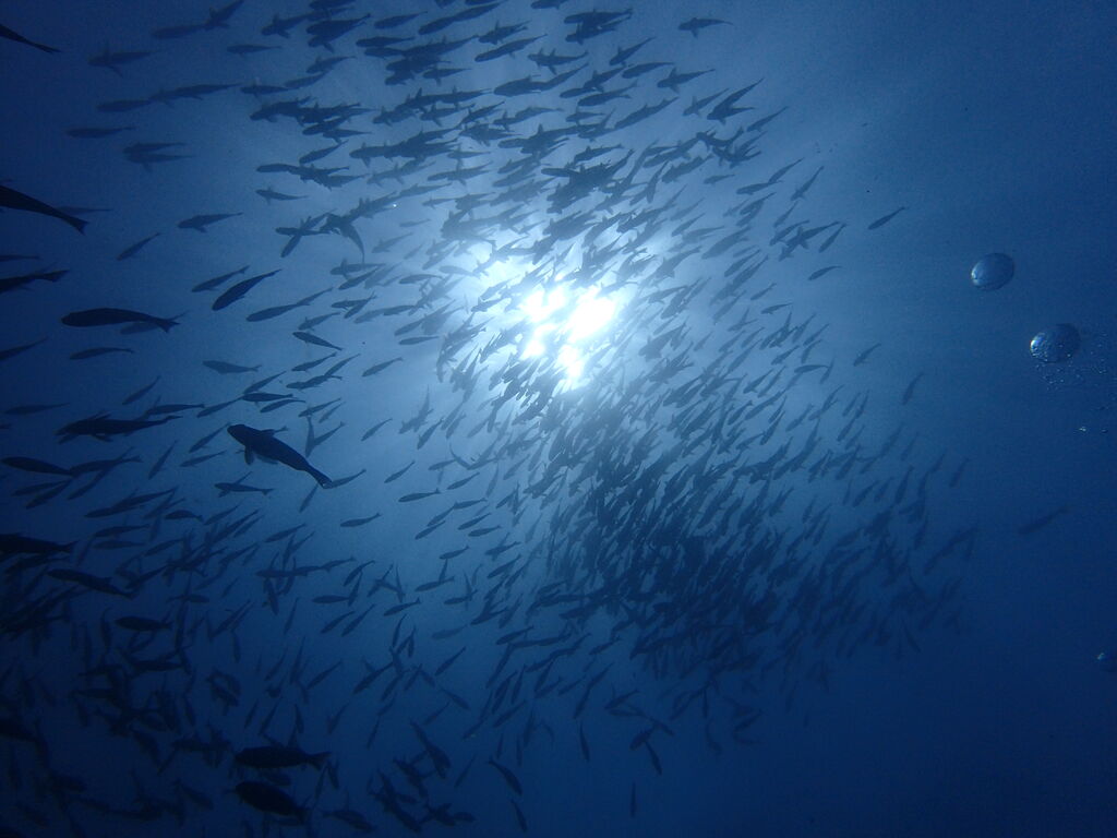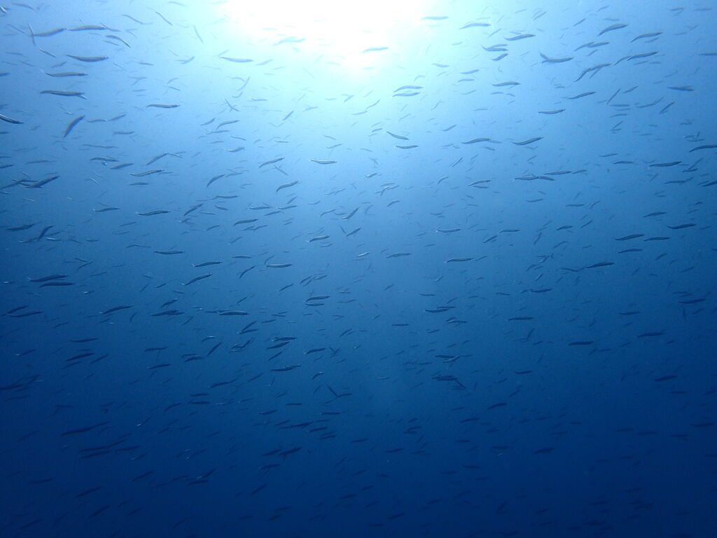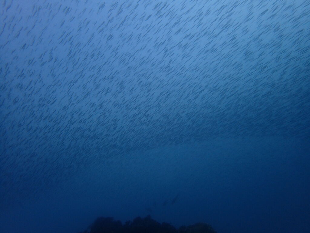 キビナゴの群れがすごい! 雲のようになって群れていました。