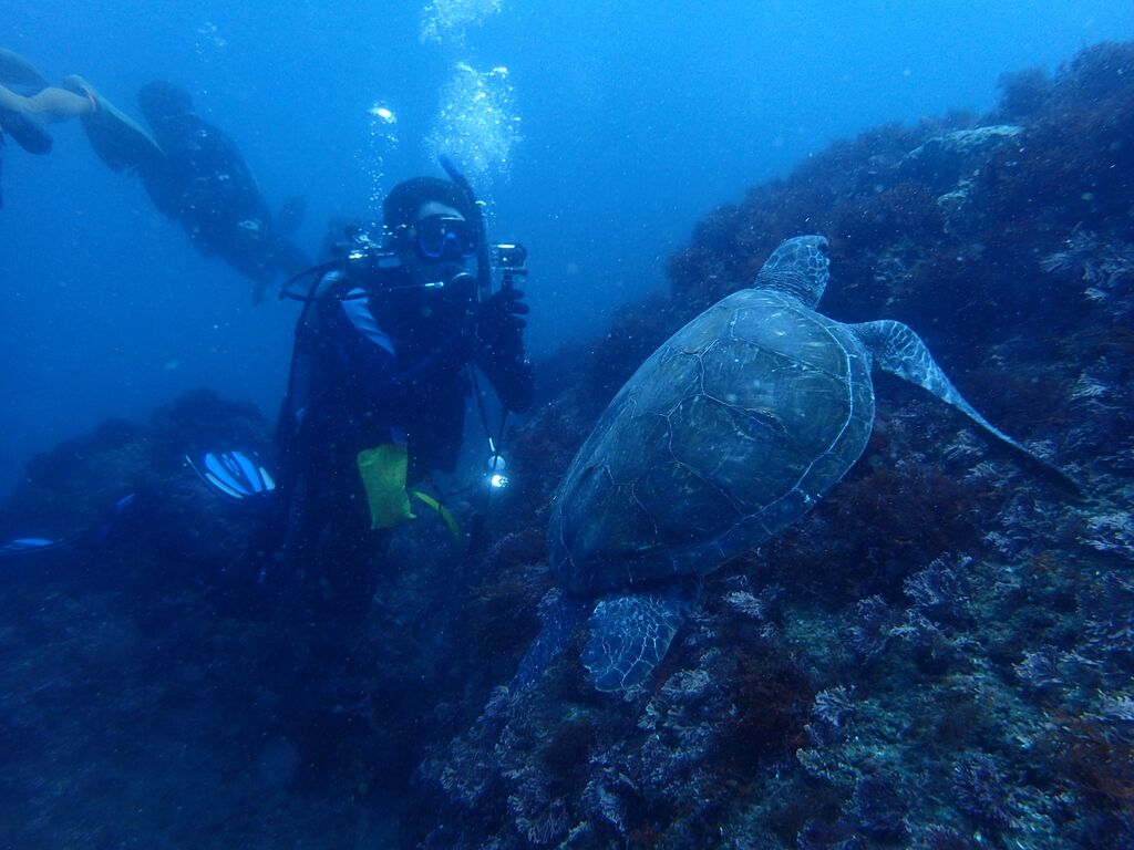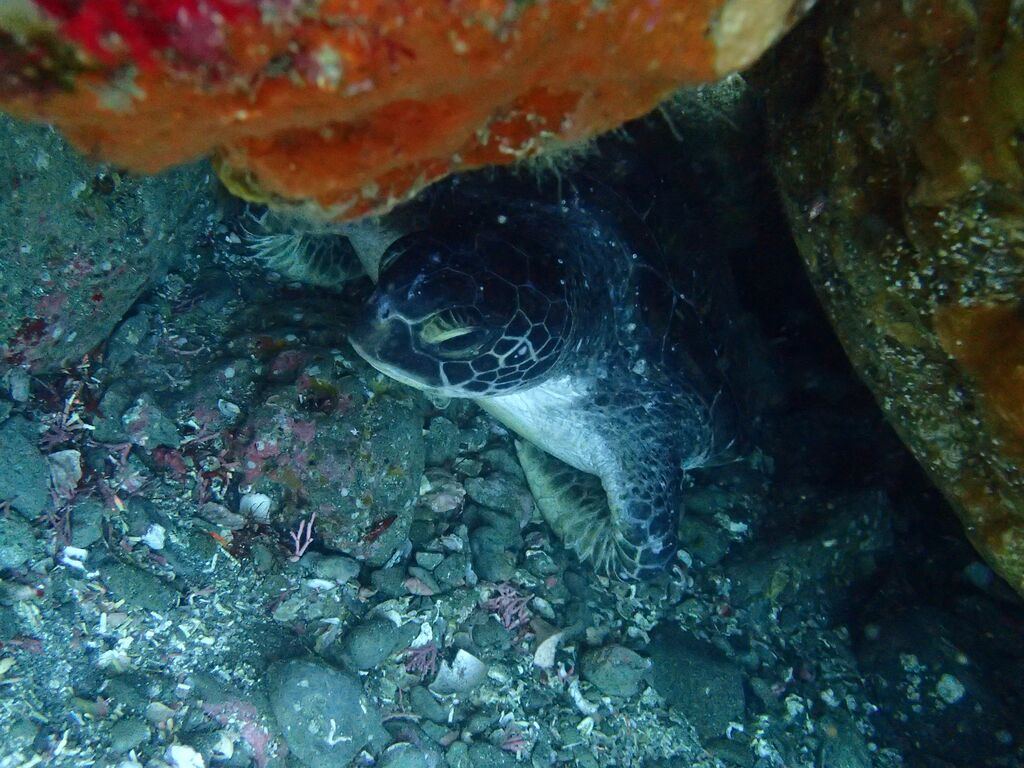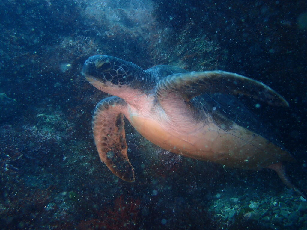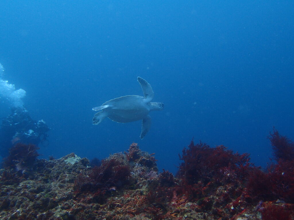 離れ根の北側ではアオウミガメが泳いでいました。