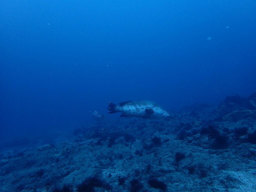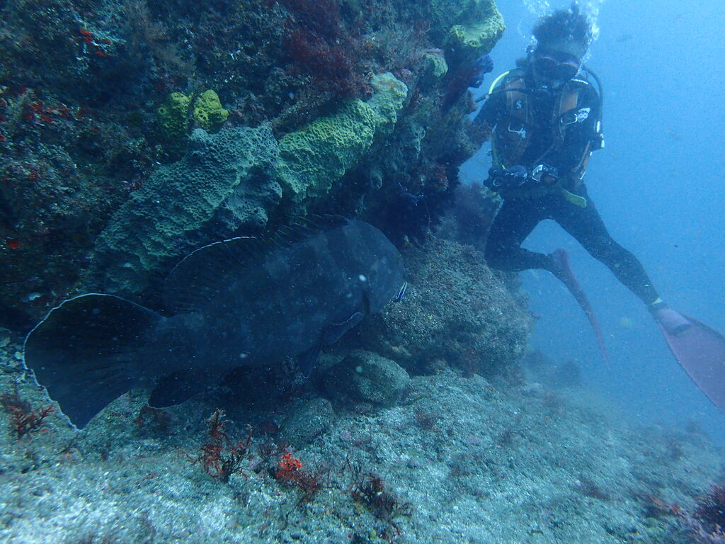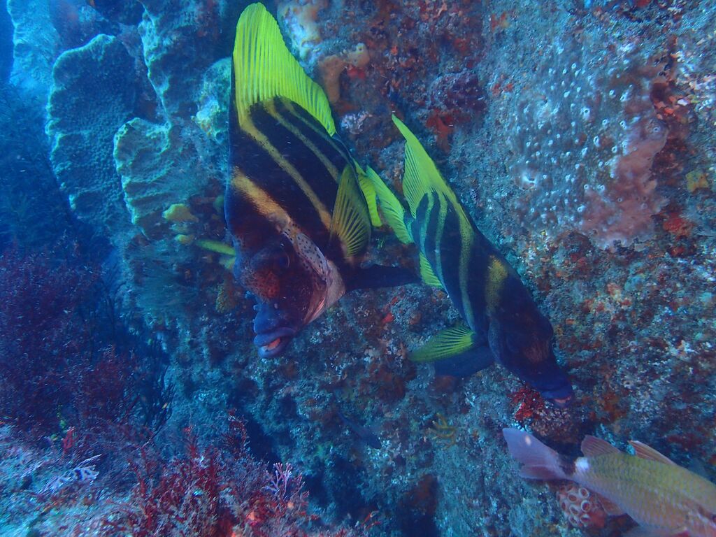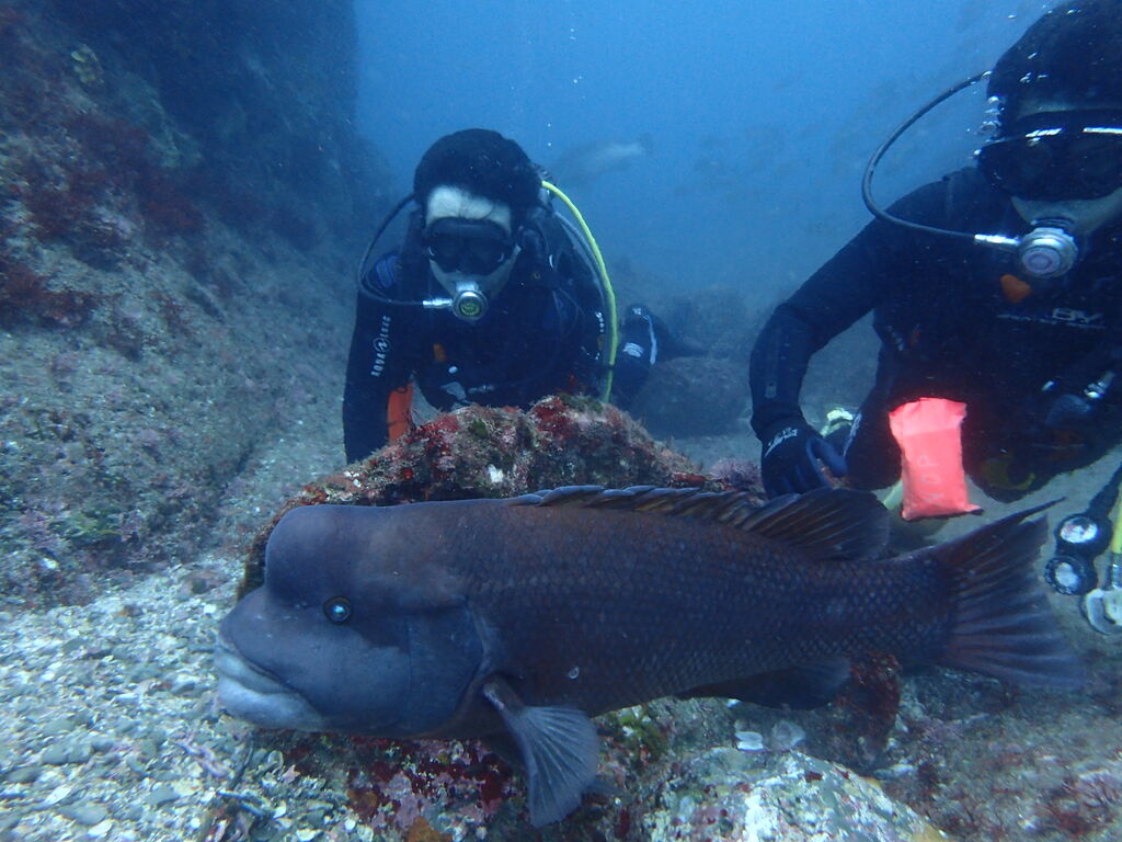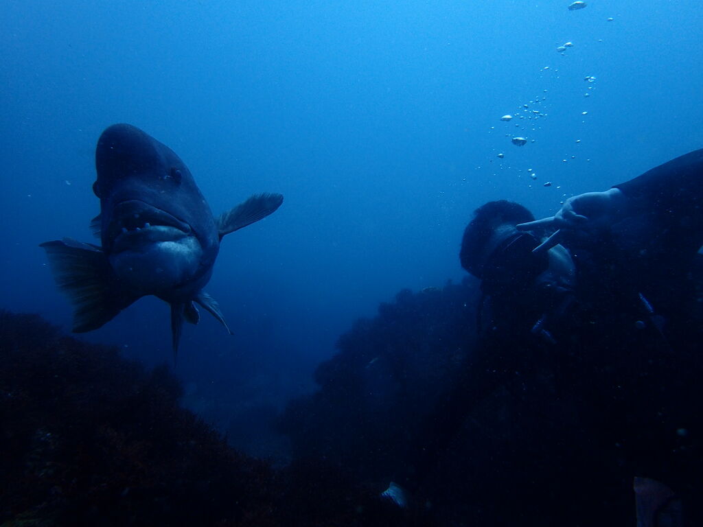 ヒゲダイとコブダイが一緒に泳いでいました。
