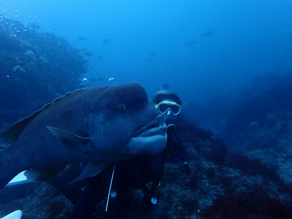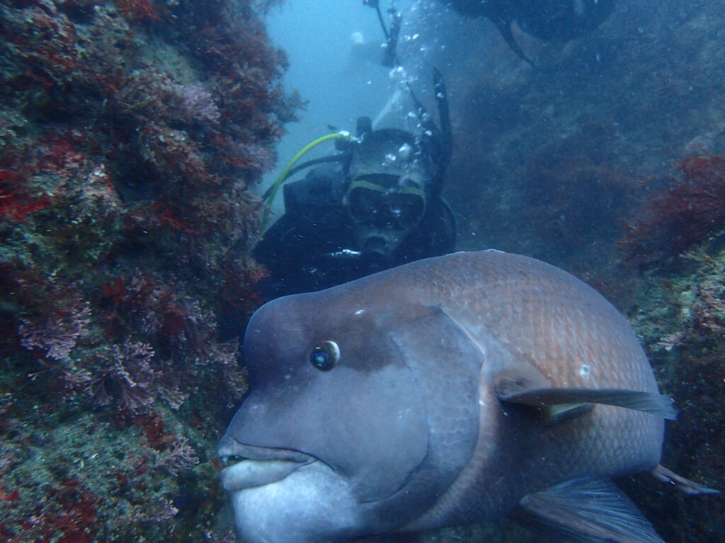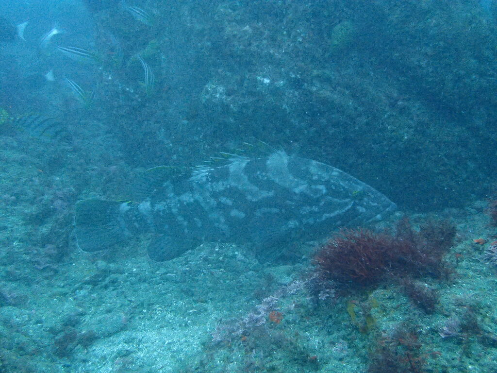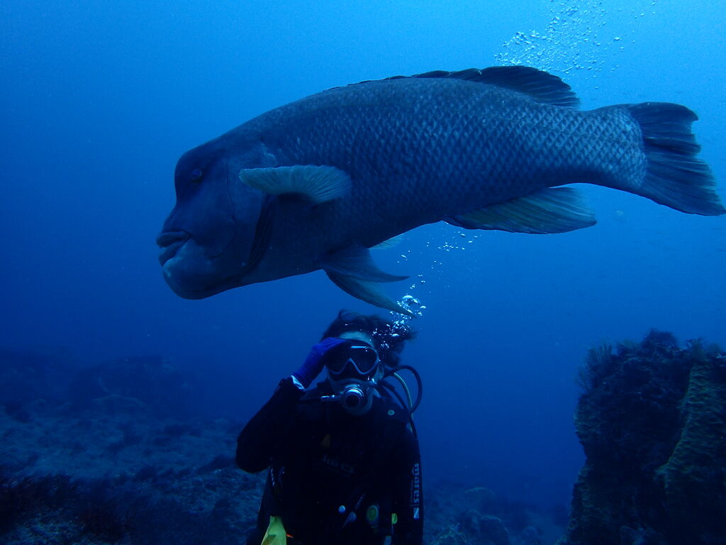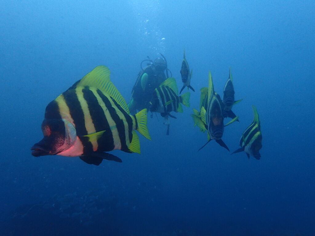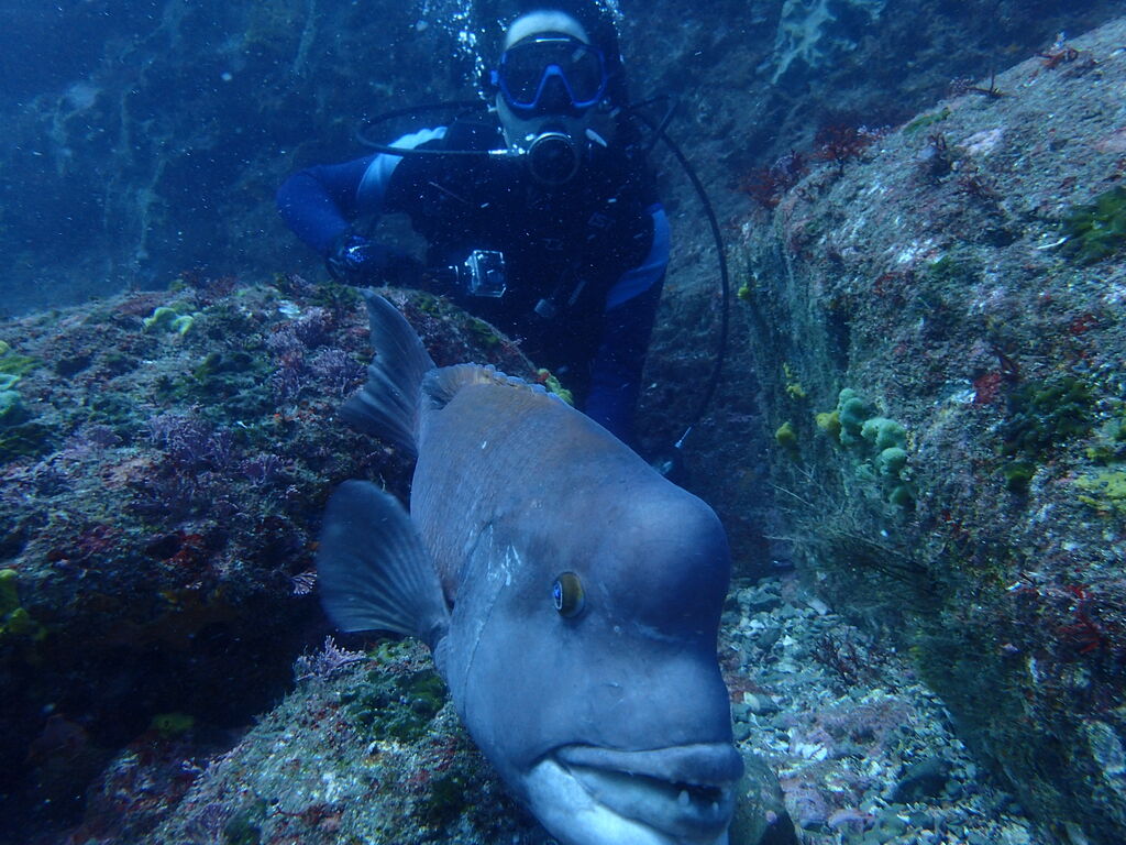 ヒゲダイとコブダイが一緒に泳いでいました。