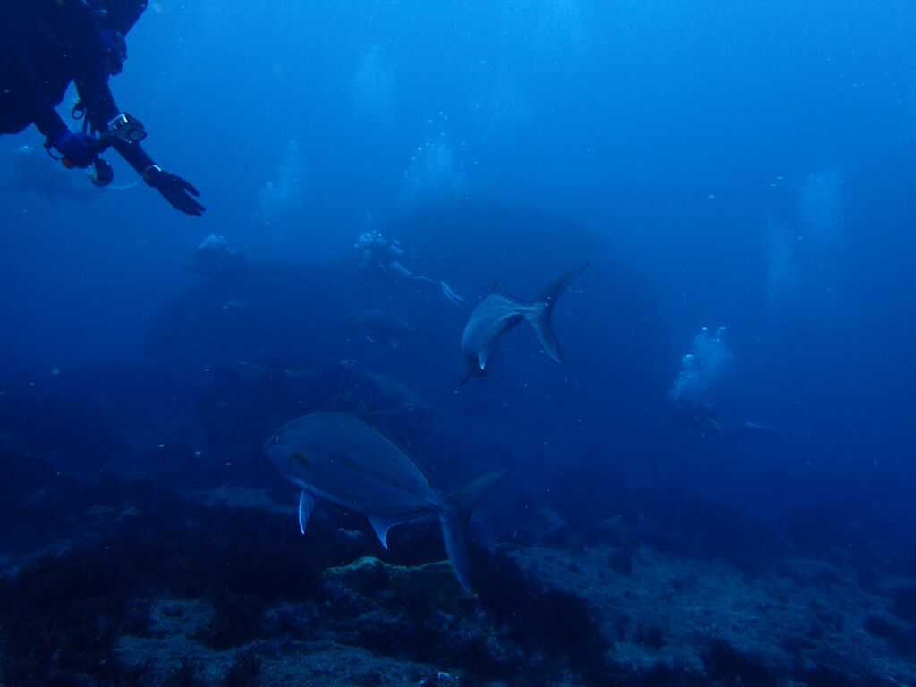 大きなカンパチの群れも現れました!