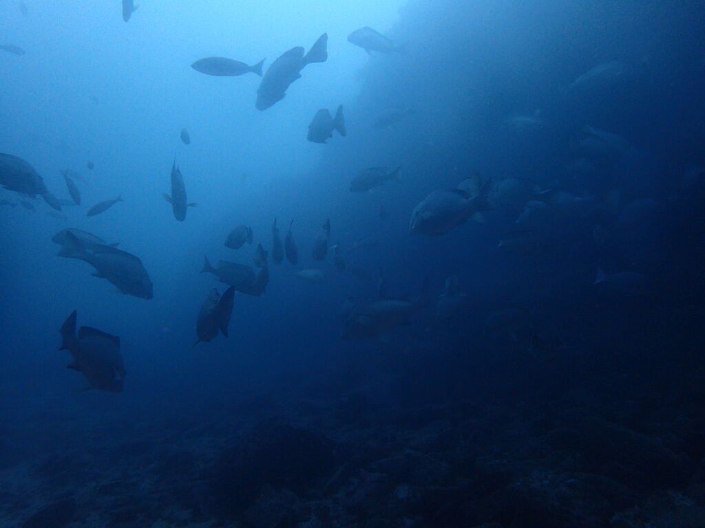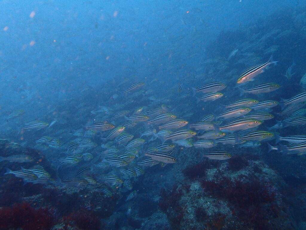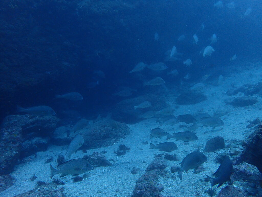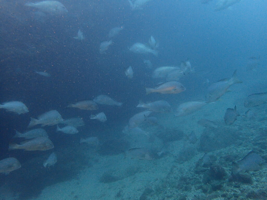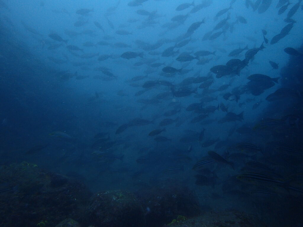 水底は水温下がって冷たい!! 沖に出ていくとイサキ・タカベの群れが大きくなっていました。