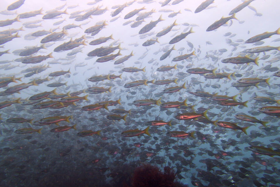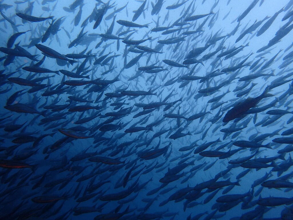 ミナミハタンポの群れ、その上にムツの群れ、沖からマアジの群れがやってきました。