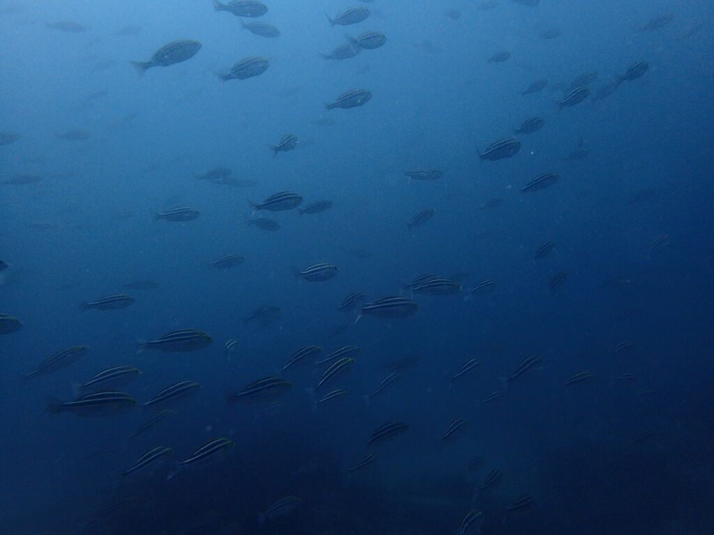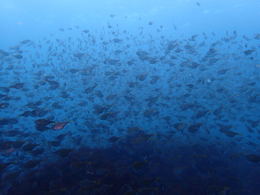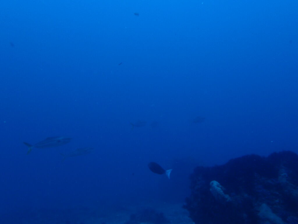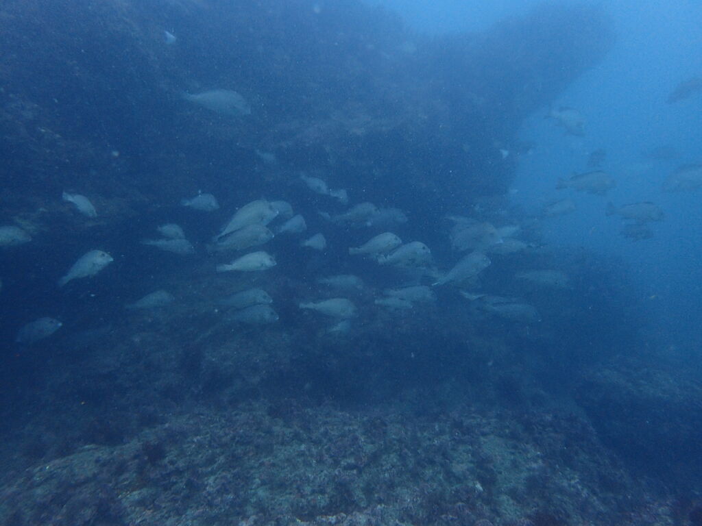コロダイの群れ。帰る途中、アオウミガメが泳いでいました。