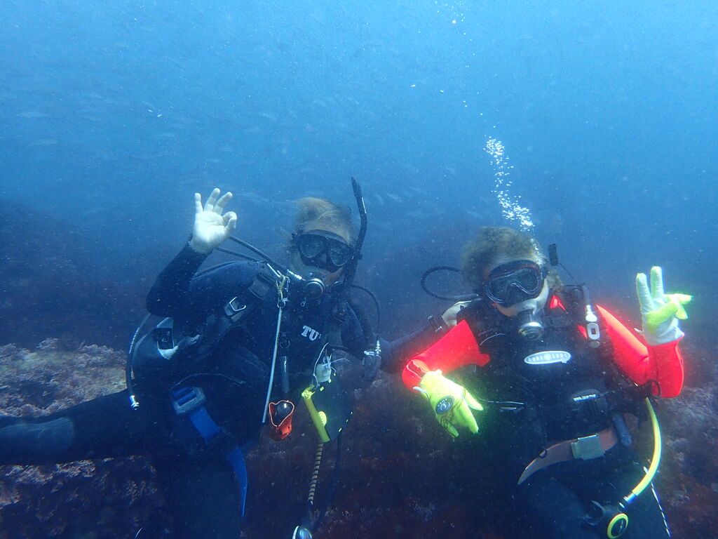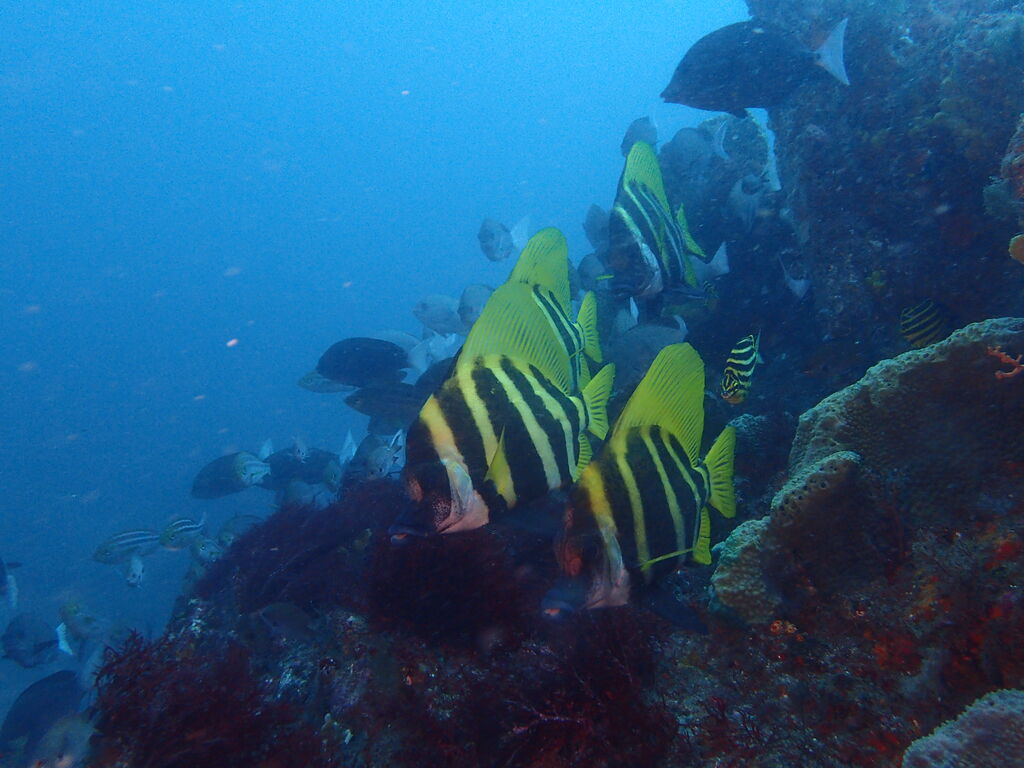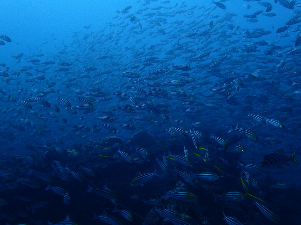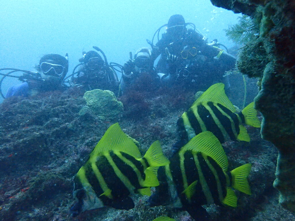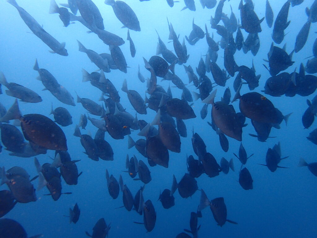 コロダイの群れ。帰る途中、アオウミガメが泳いでいました。