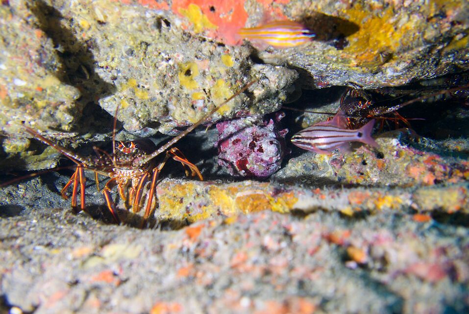 移動して壁の亀裂に珍しくイセエビがたくさん入っていました。