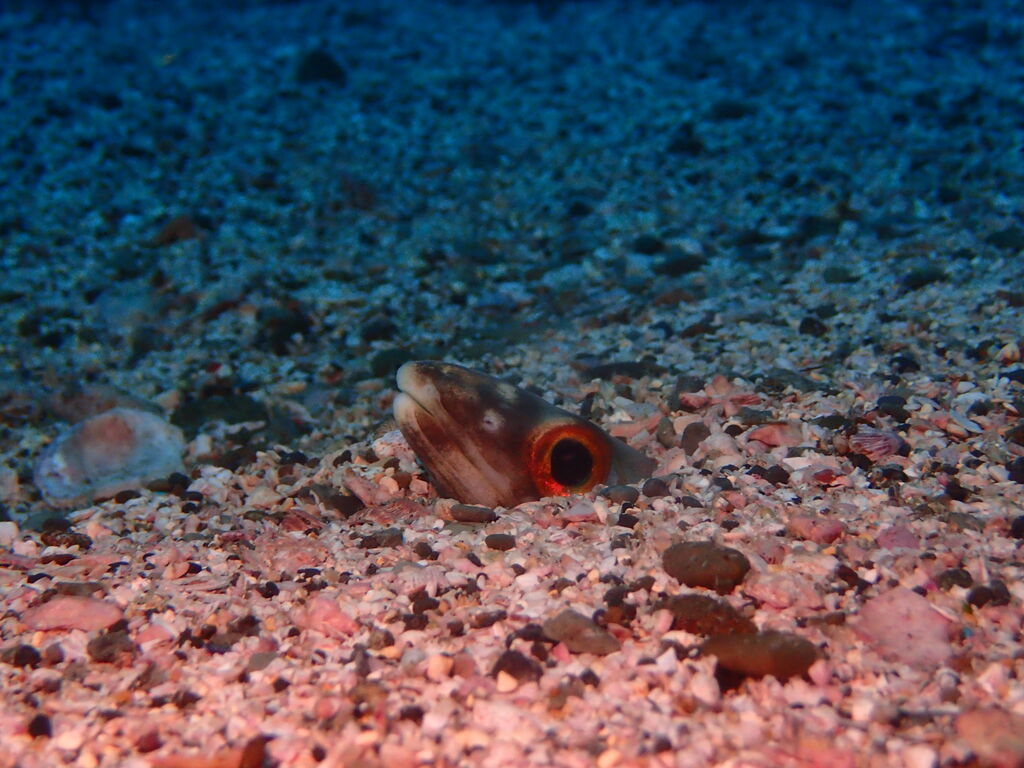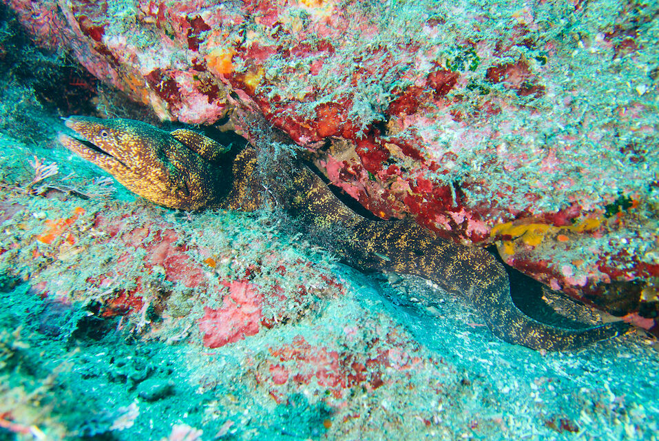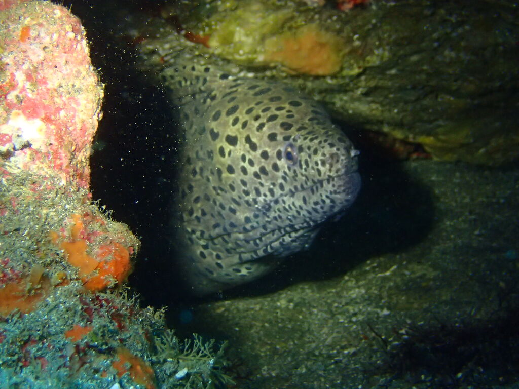 壁の亀裂にはウツボ、クリアクリーナーシュリンプが着いています。
