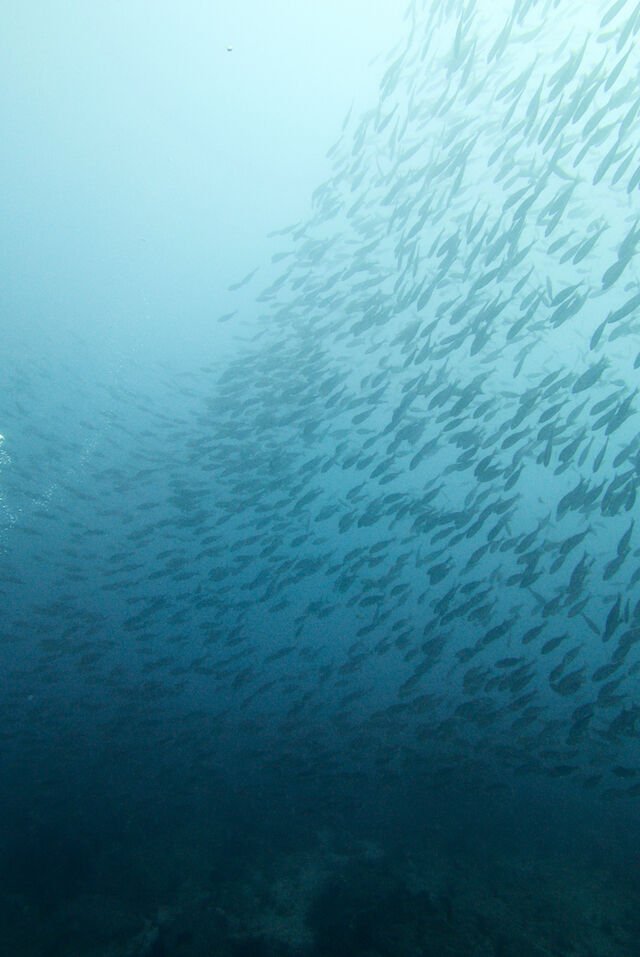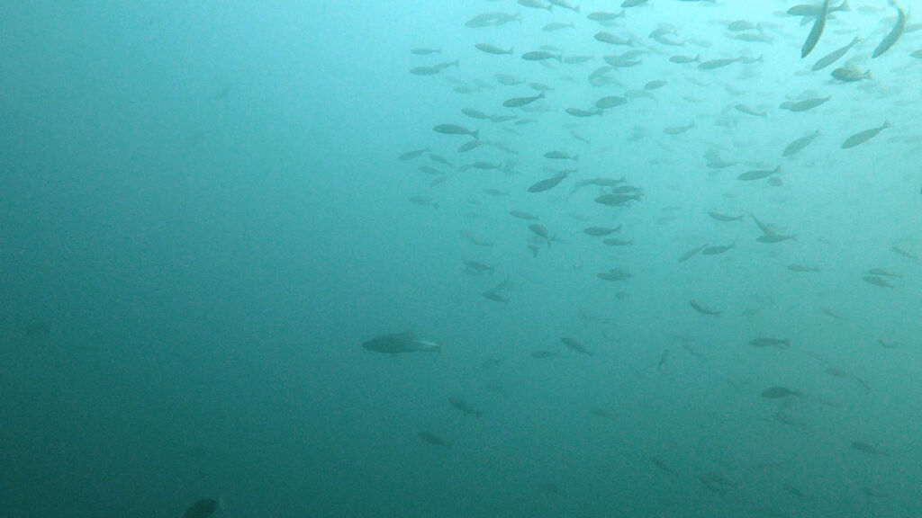 イサキの群れが沖まで伸びています。