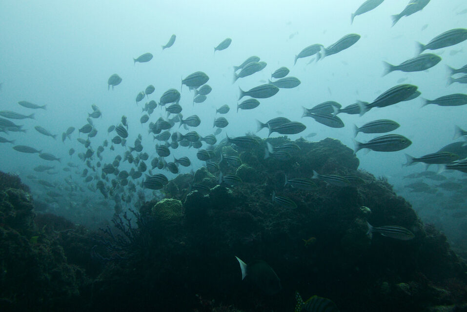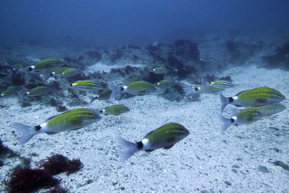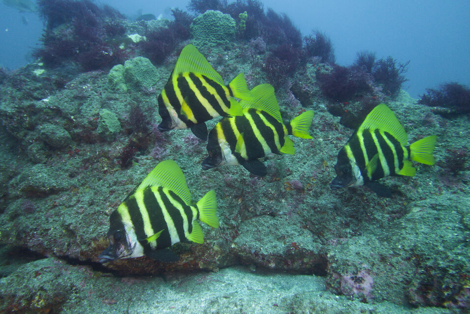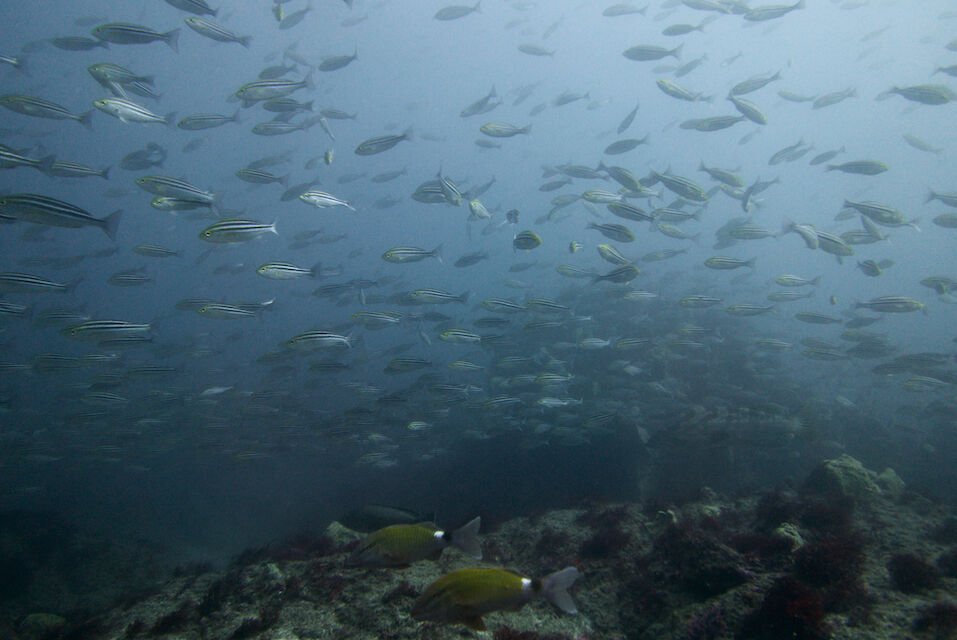 イサキの群れが威勢よく根を越えていきます。