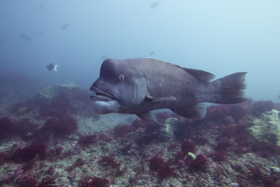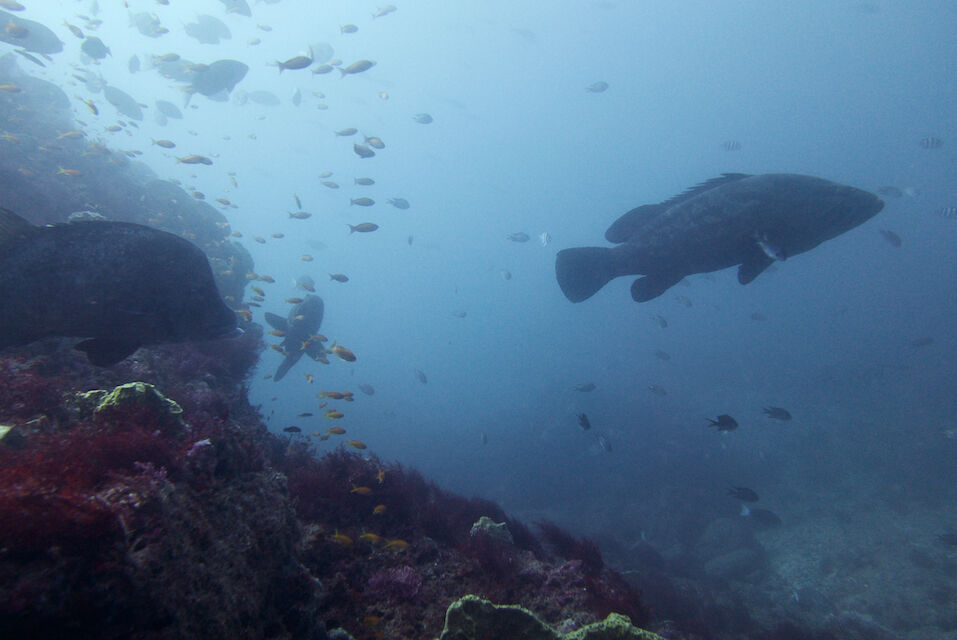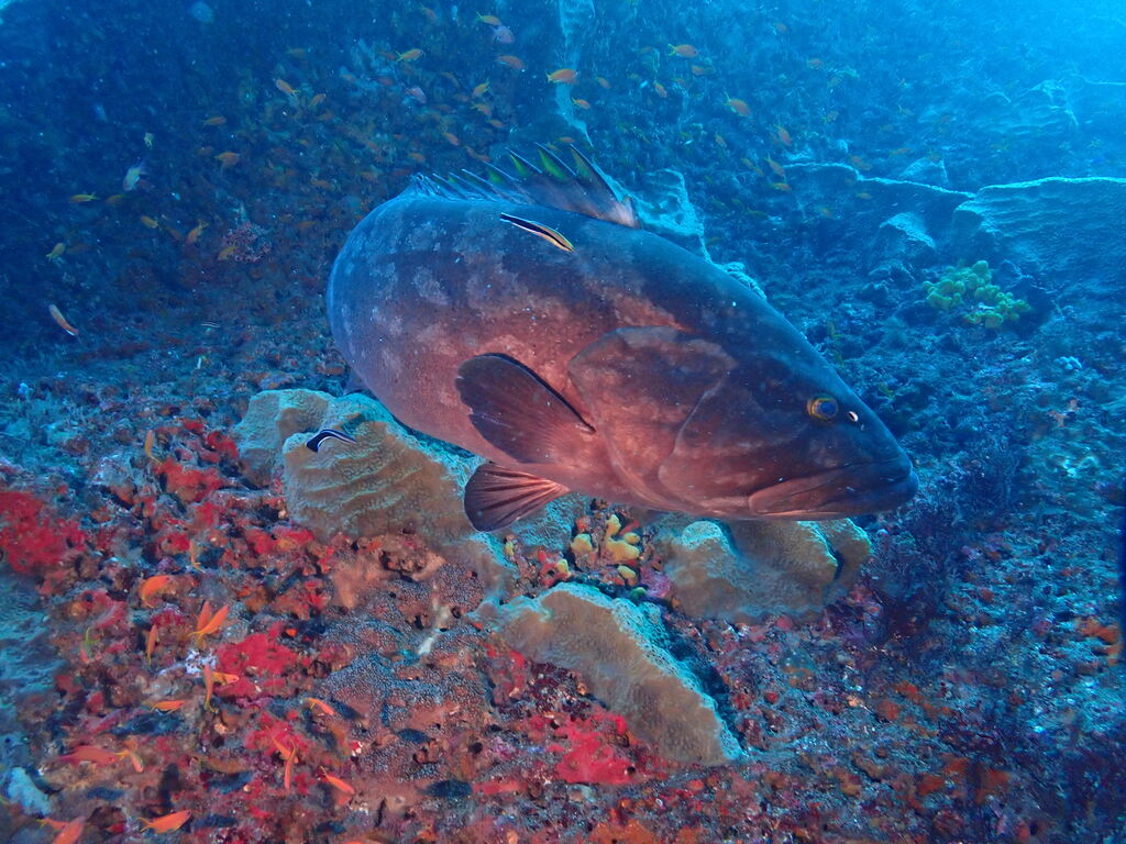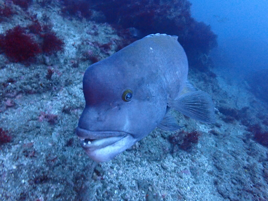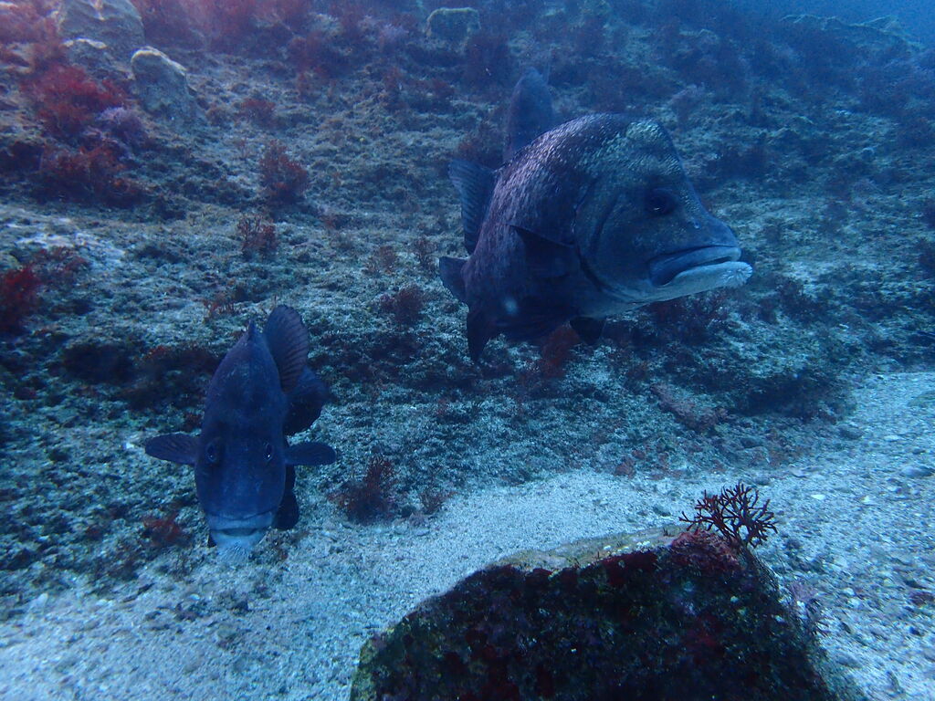 激流で北側に回り込むのが大変。上の方にクエがホバリング。逃げそうで逃げず、ずっと撮らせてくれました。