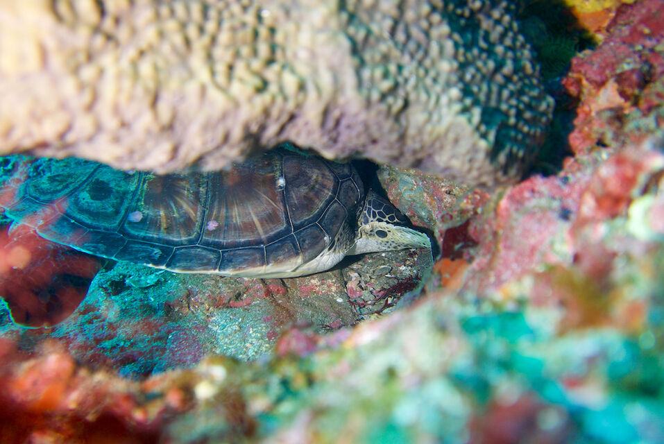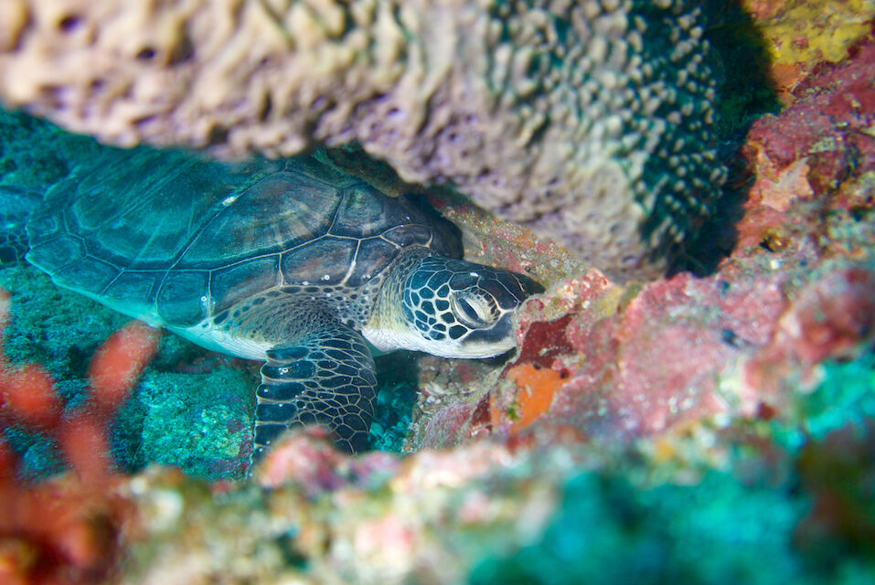 根を越えるとアオウミガメが泳いでいました。
