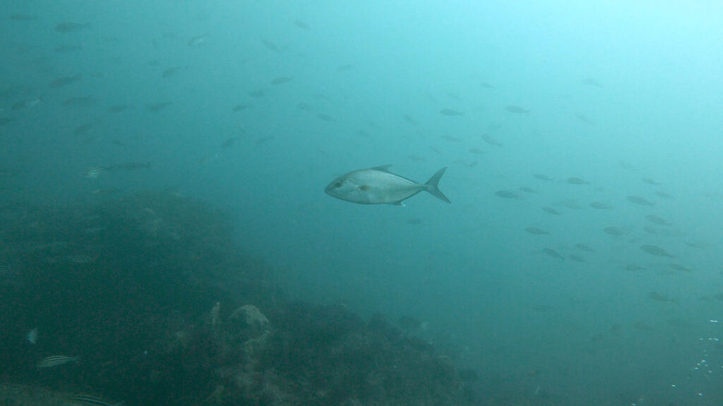 エントリーすると弱い真潮、視界は白っぽい。