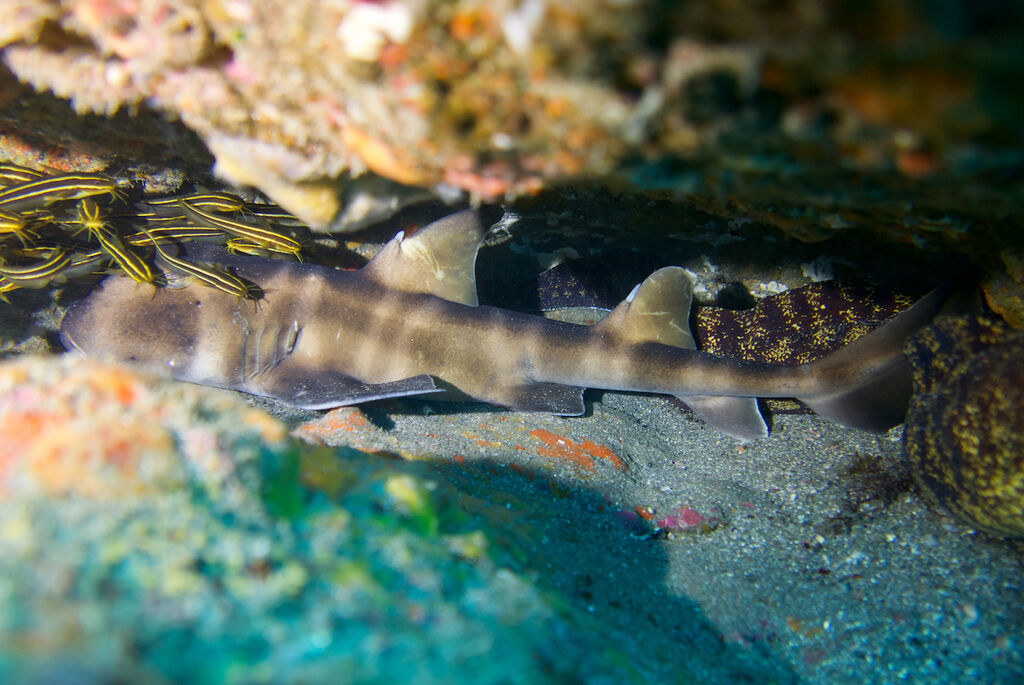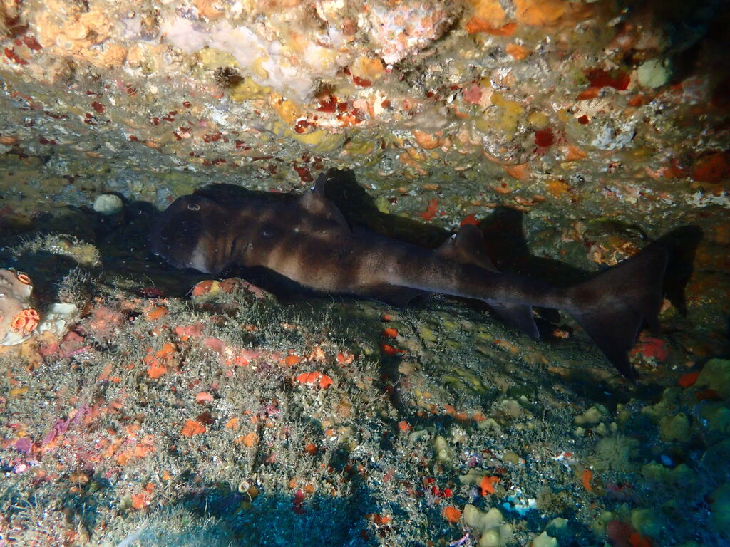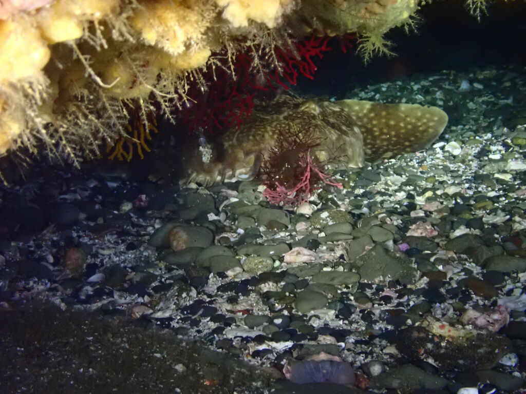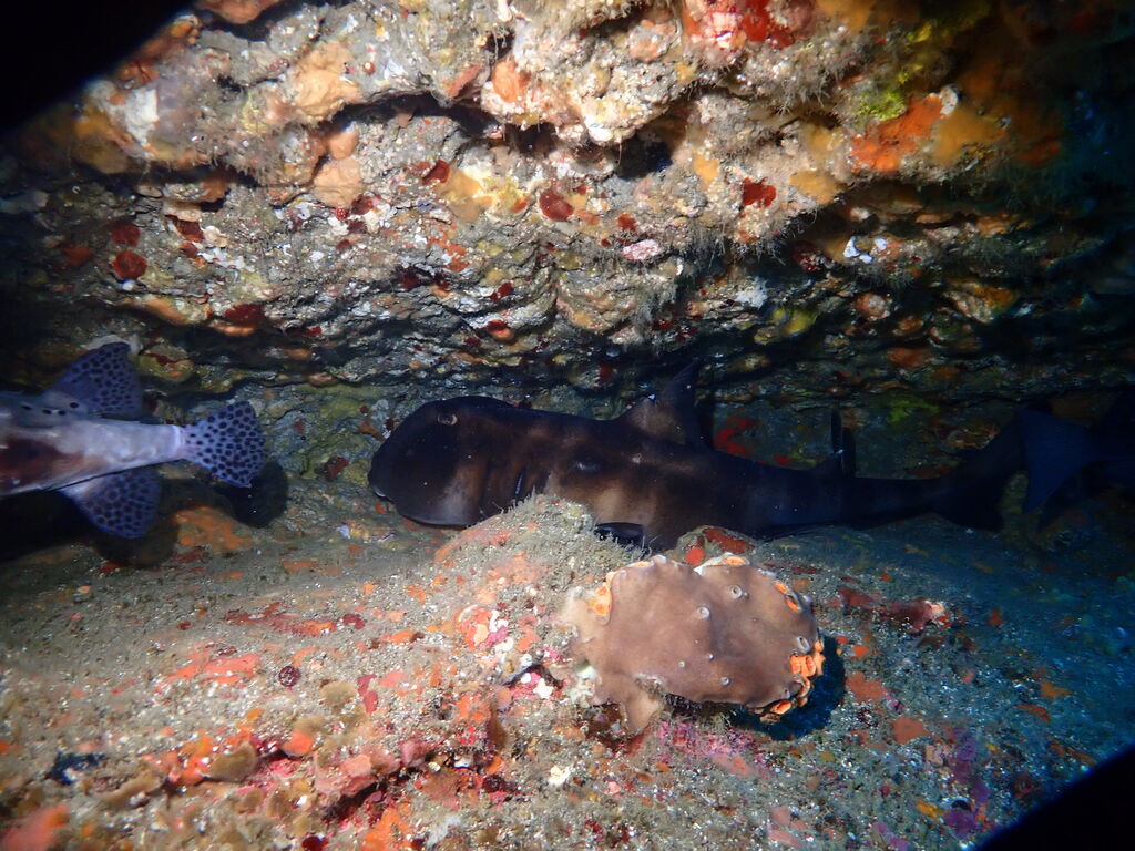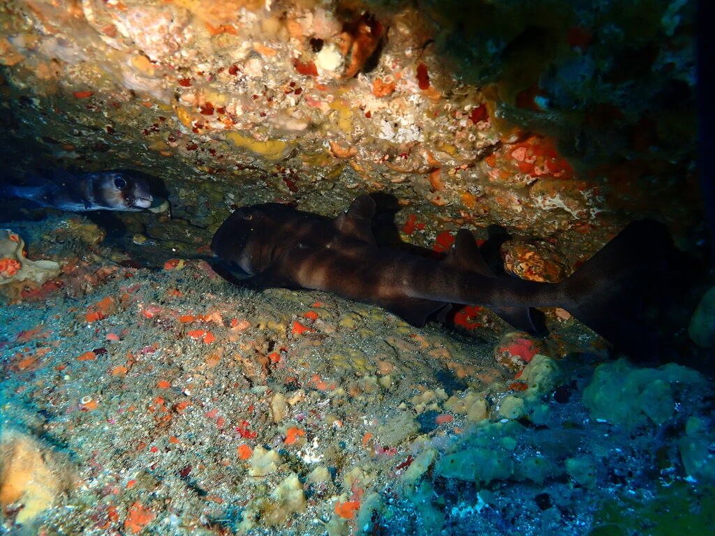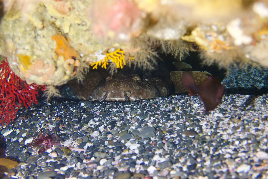 トビエイの根には大きなネコザメ☆ 岩の亀裂にはモクズショイが居ました。