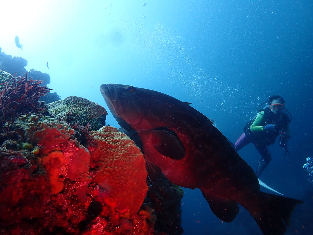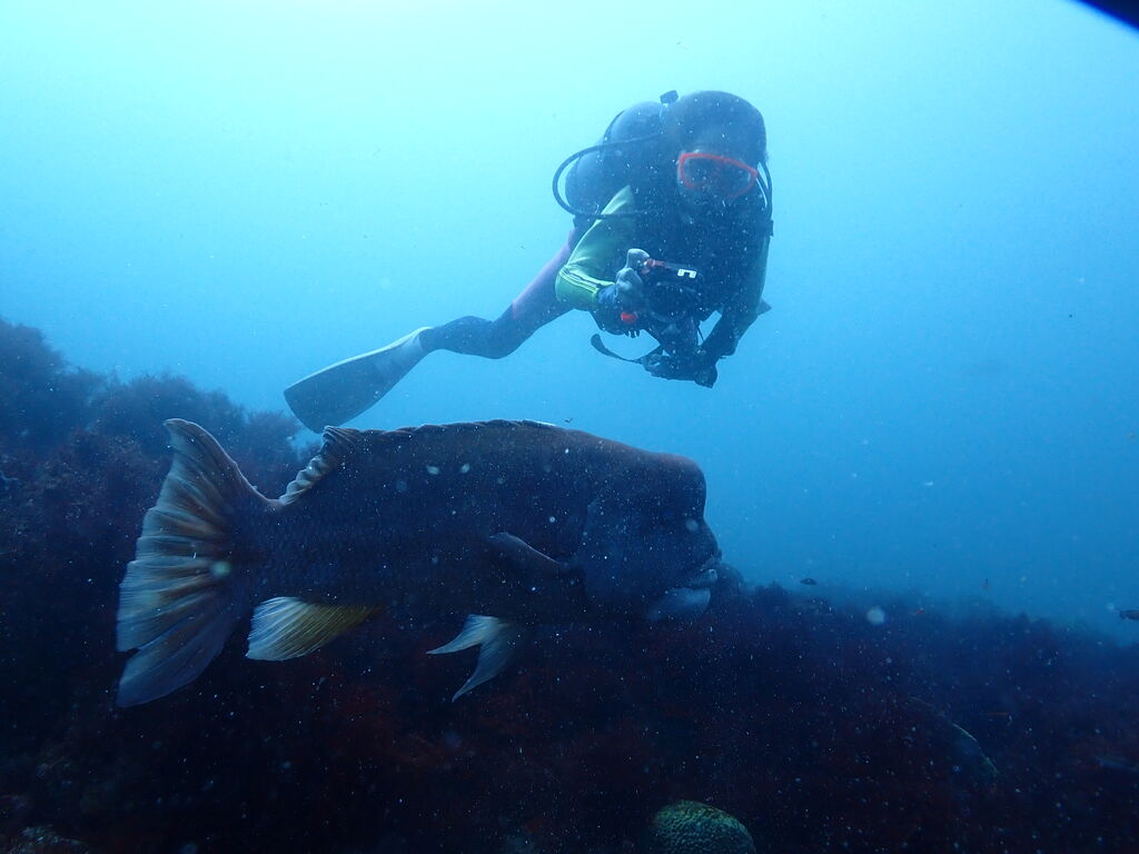 ポイント下にはコブダイが居ましたよ。 食事中でした。
