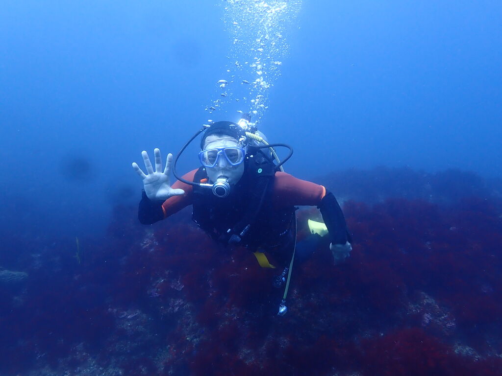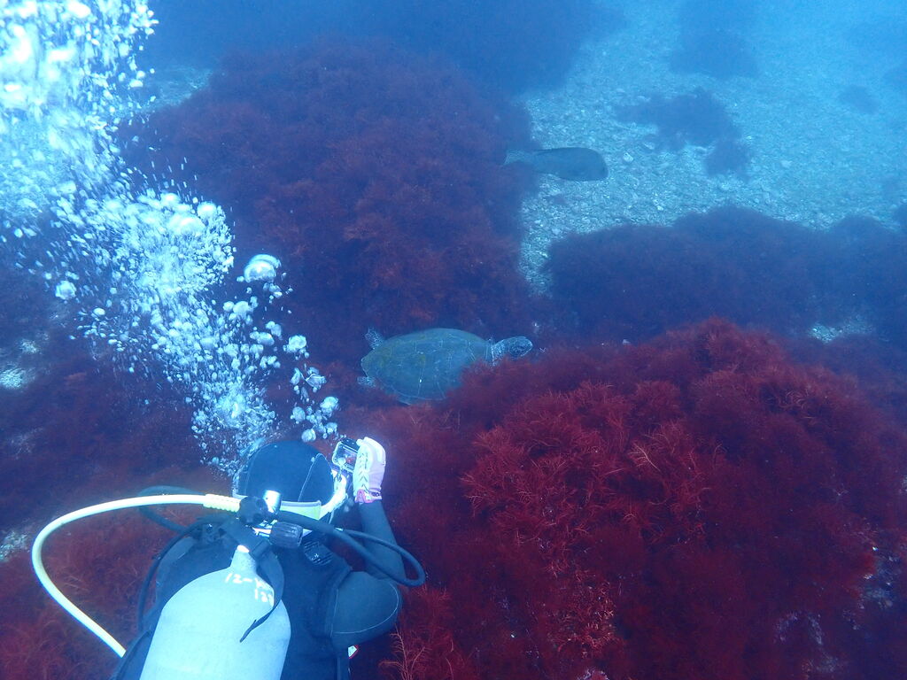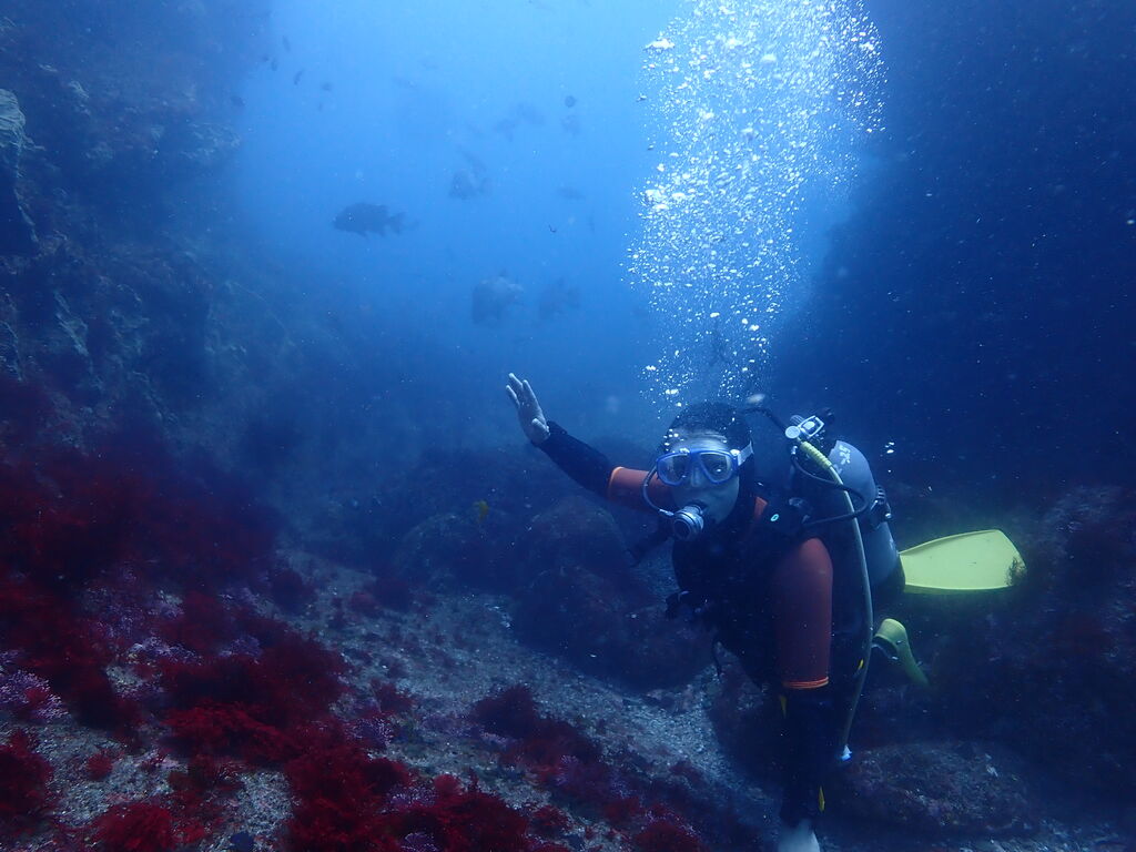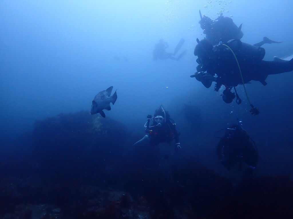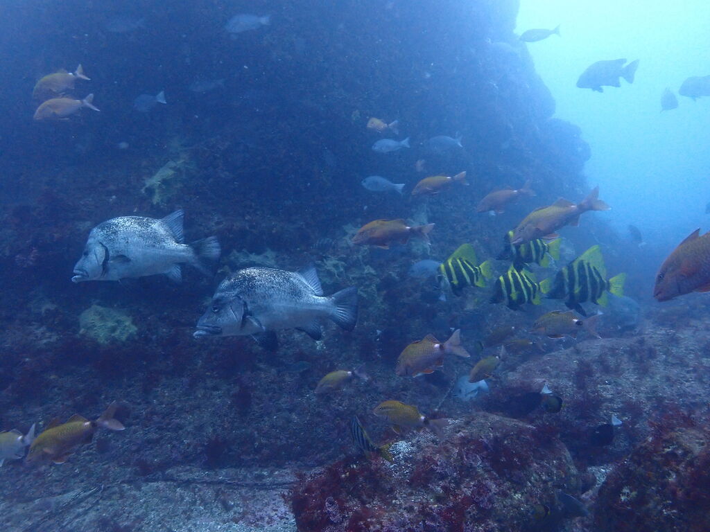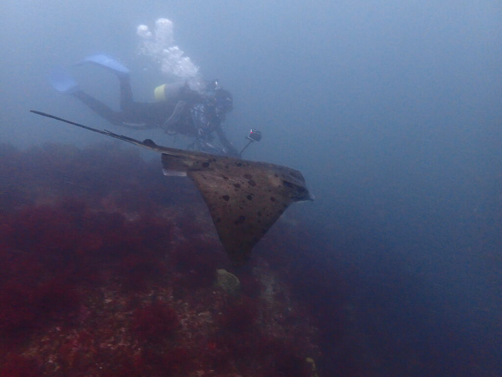 イサキが群れていて、そこにトビエイが一匹飛んでいましたよ!