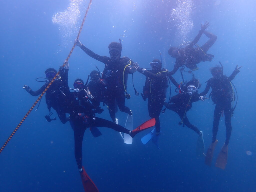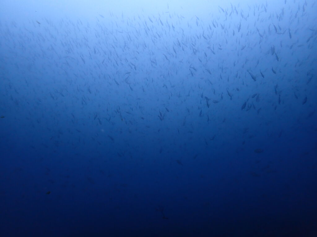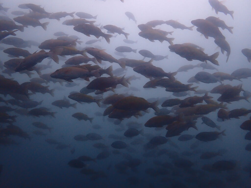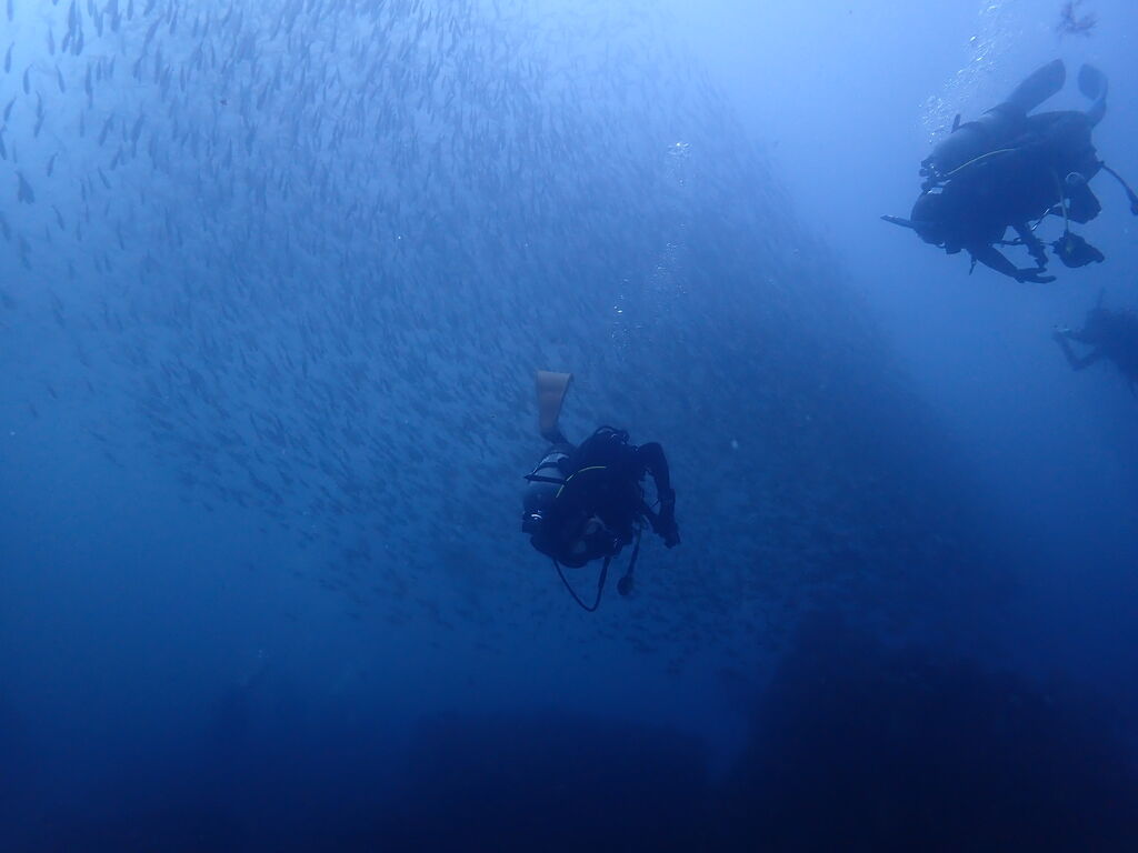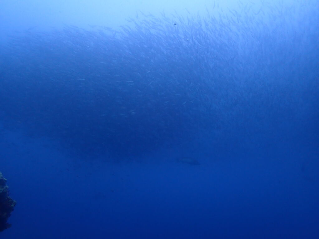 沖に出ていくと真っ黒な塊が見えてきて、近づいていくとイサキの大群でした!