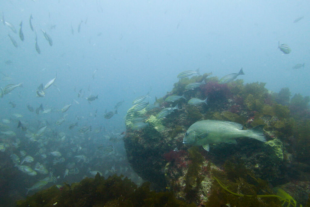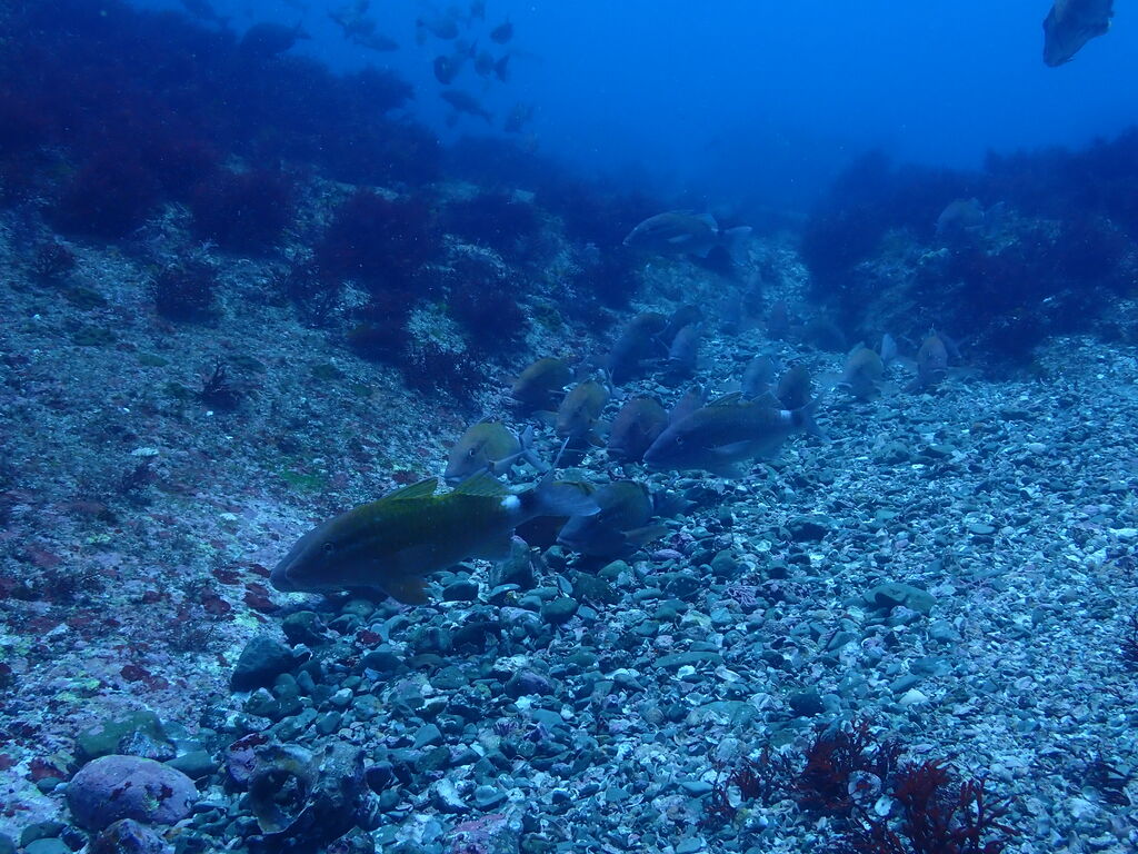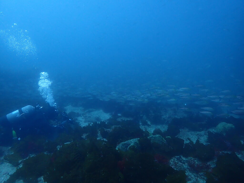 沖はイサキだらけ、群れは西の方に伸びています。