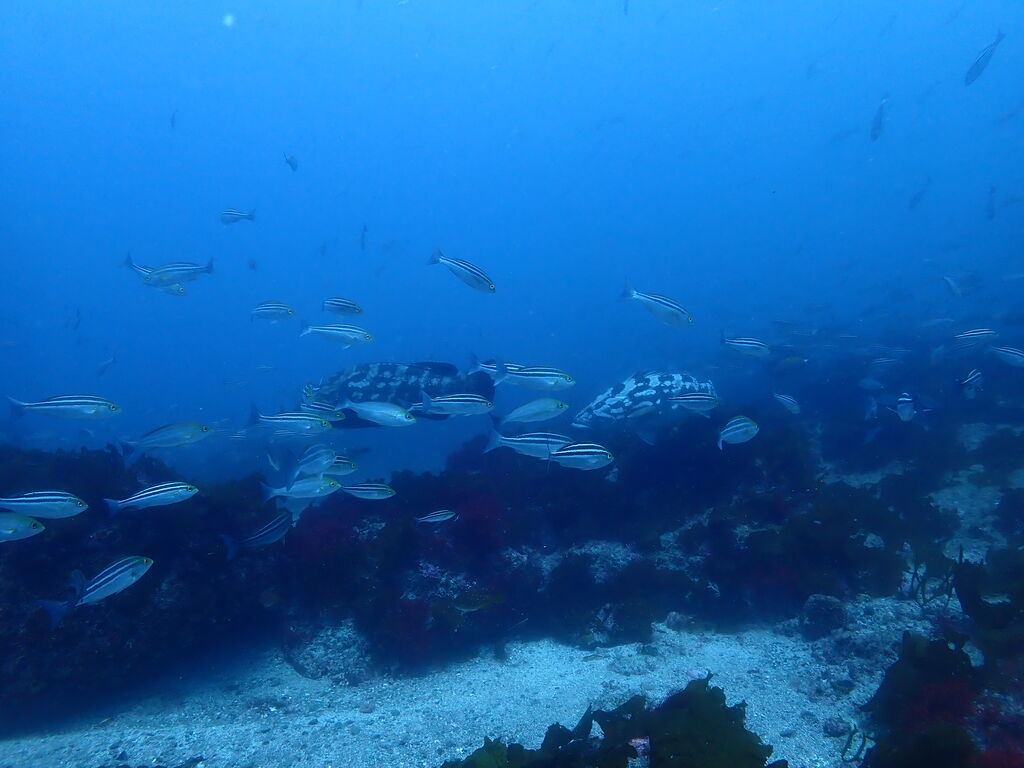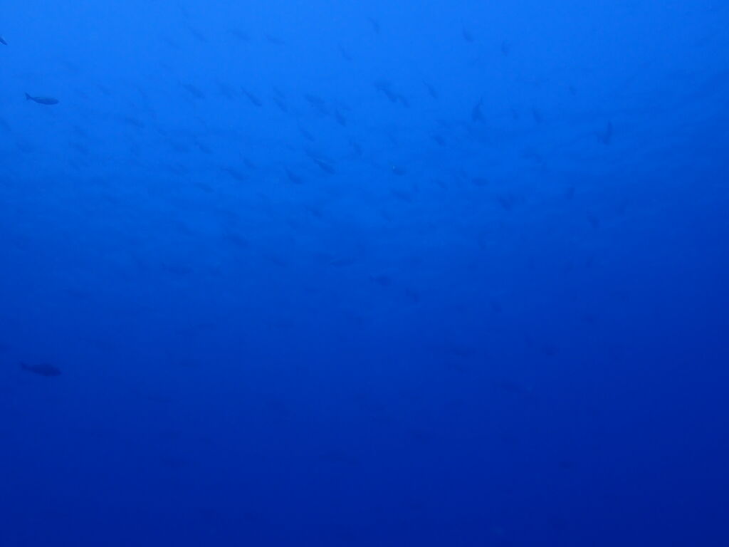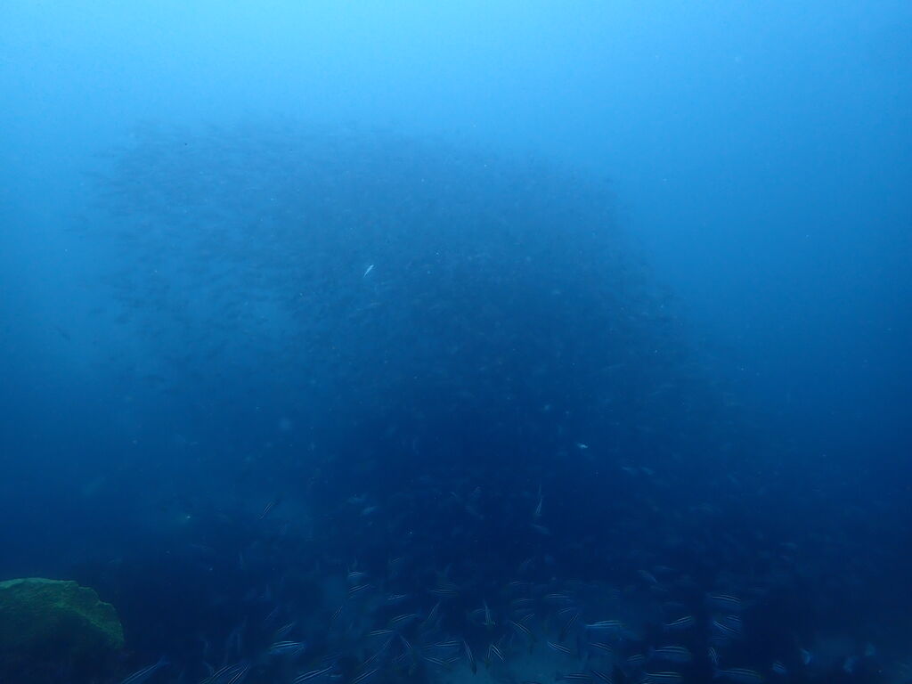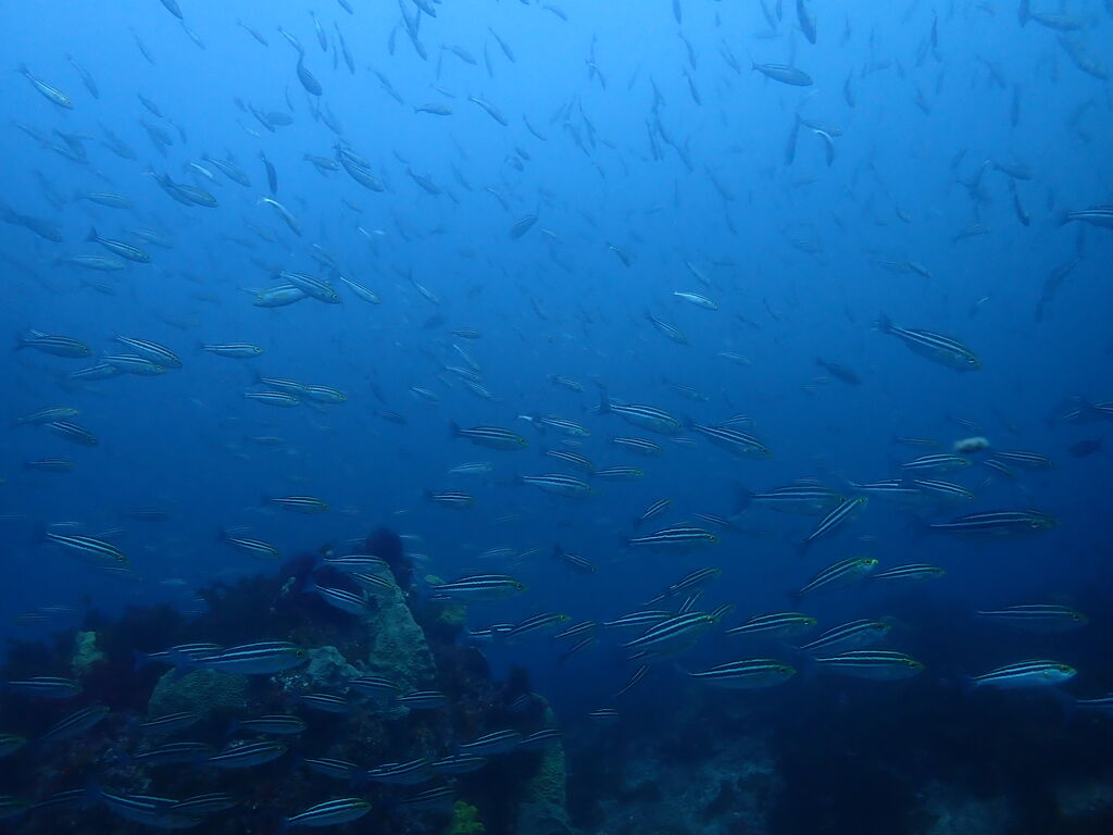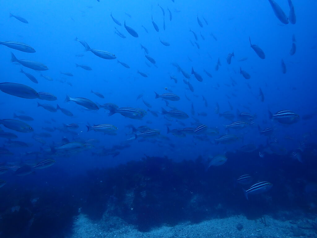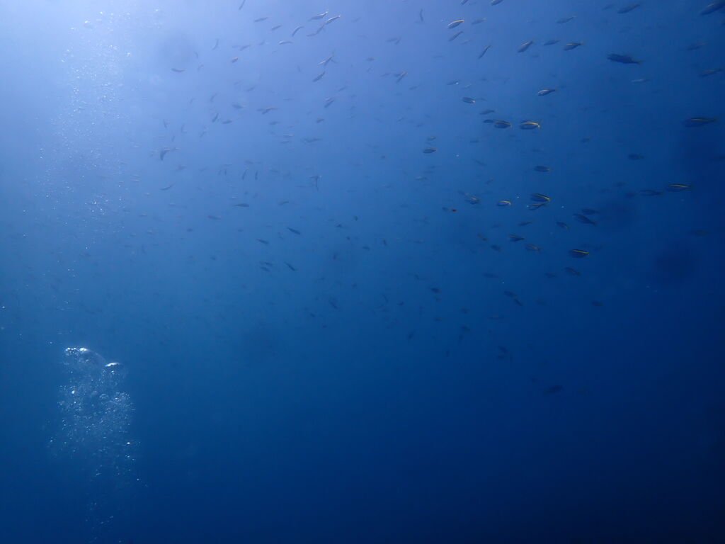 <タカベの子をヒレナガカンパチの子が追っていました。>