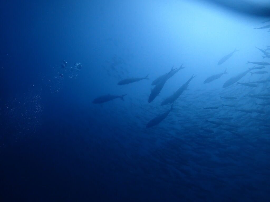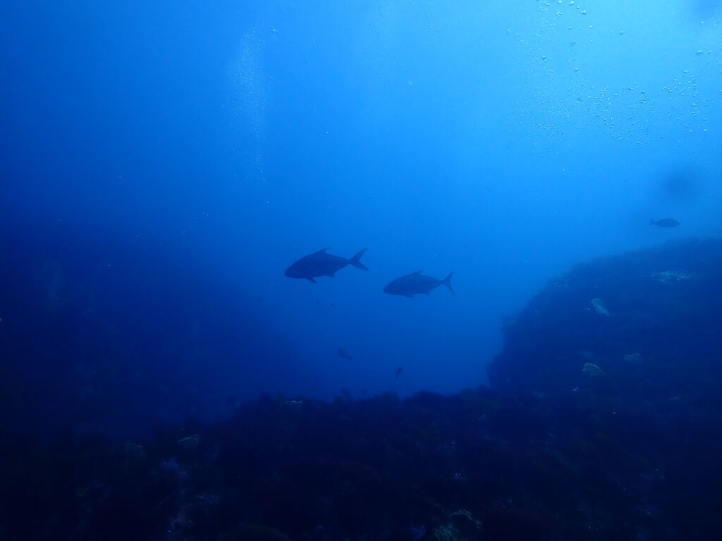 大きなヒレナガカンパチが泳いでいました。