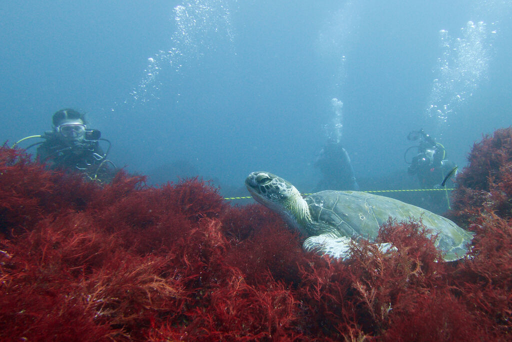 ポイントの下にはアオウミガメが泳いでいました。