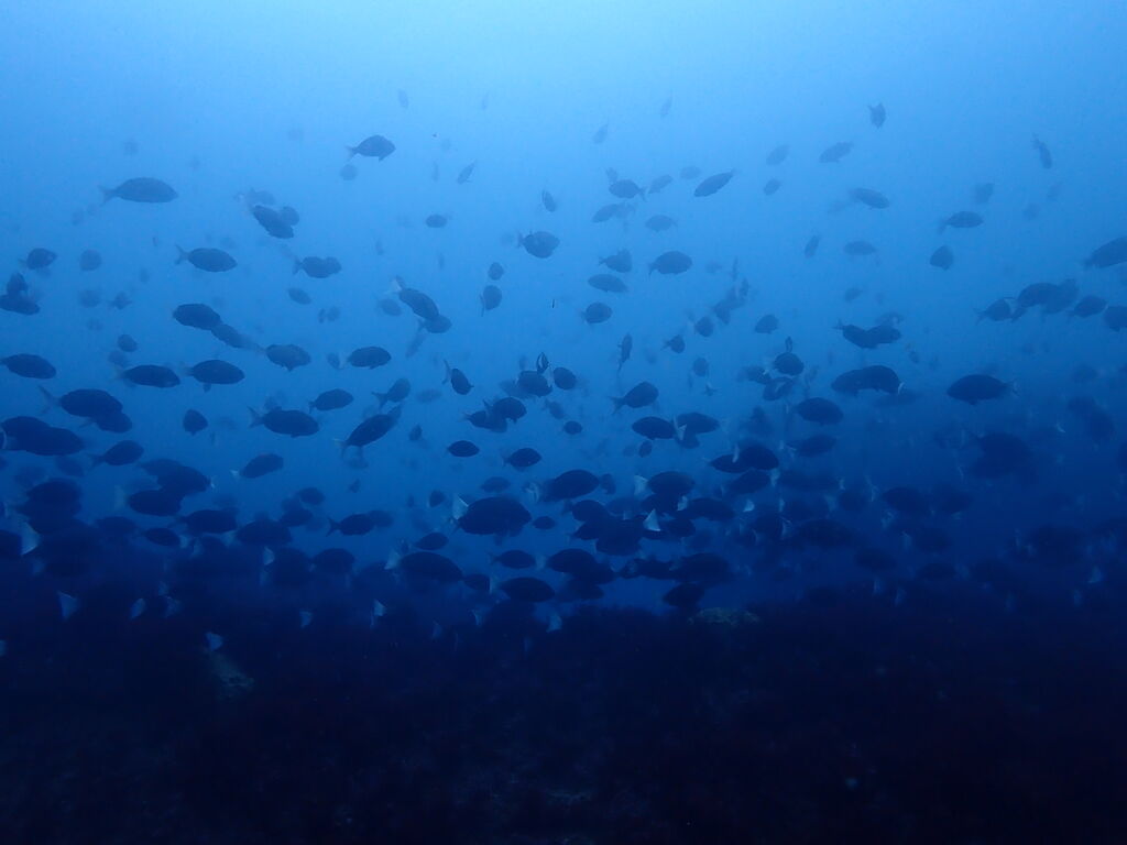 メジナが集結。 西の山の南側にはアオウミガメが居ました。