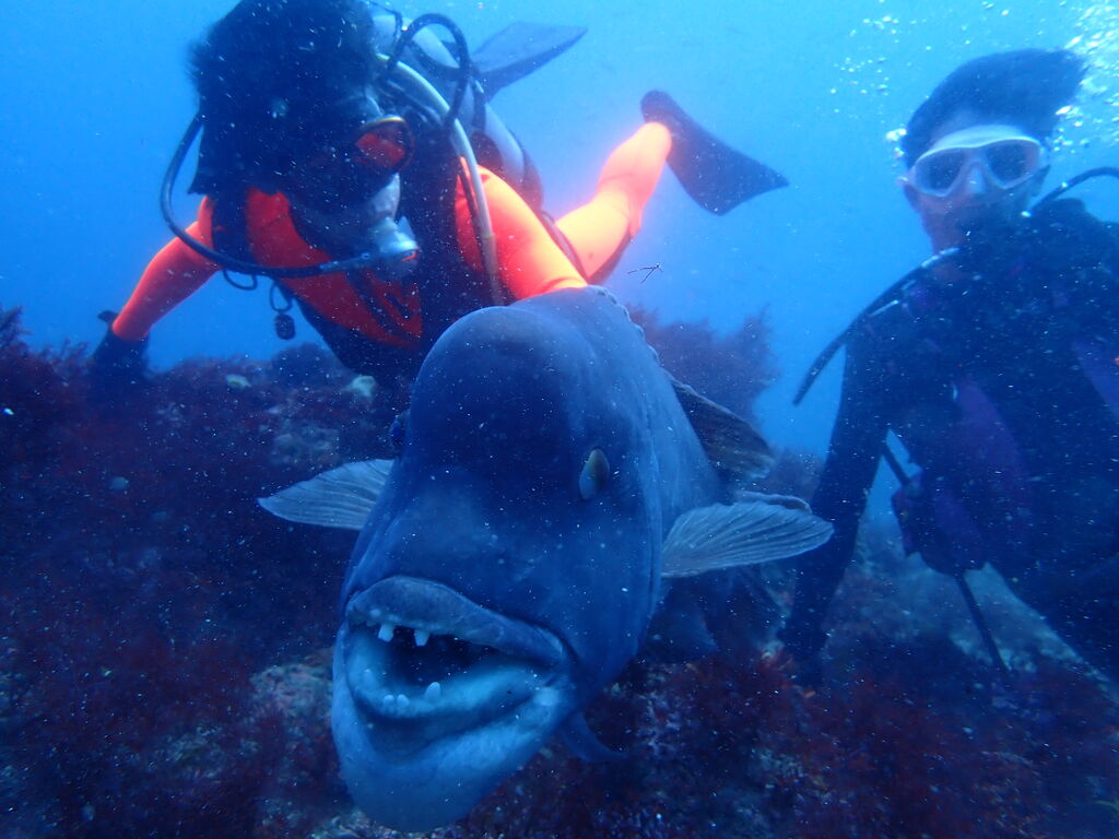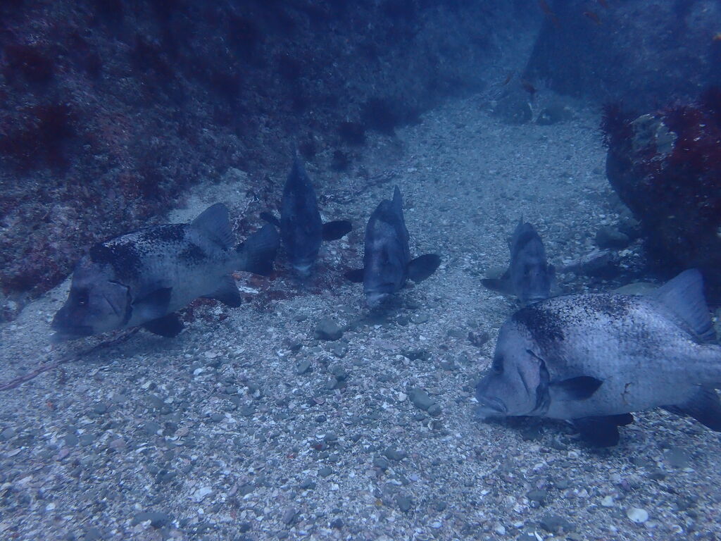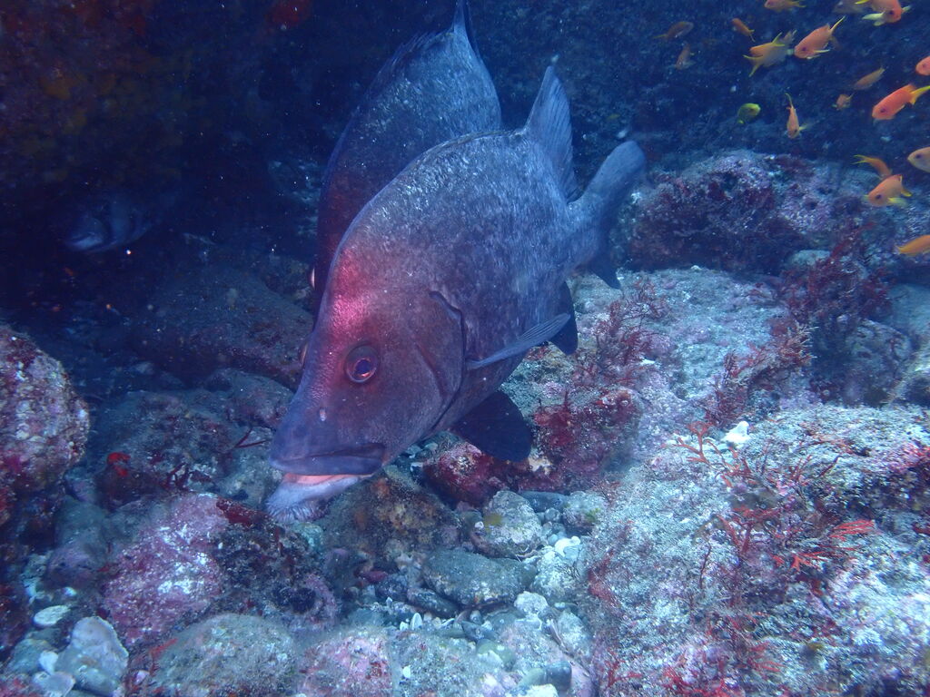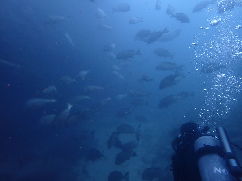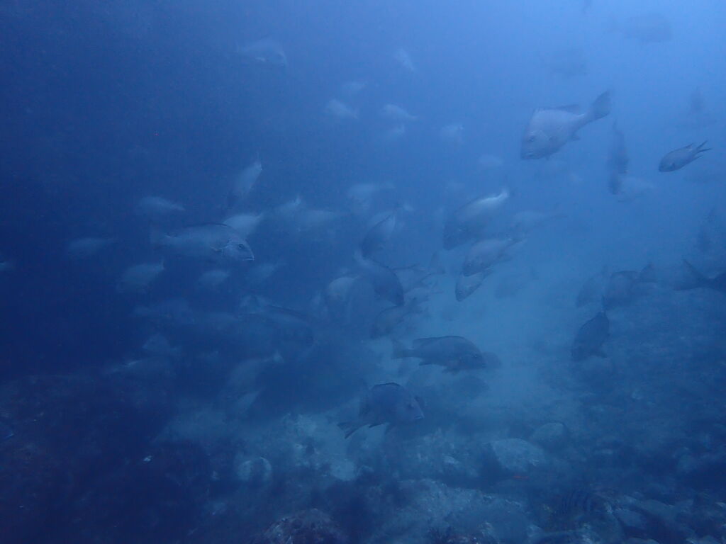 コブダイと一緒にイサキの群れを鑑賞します。