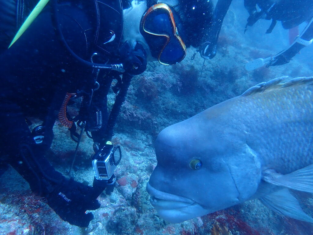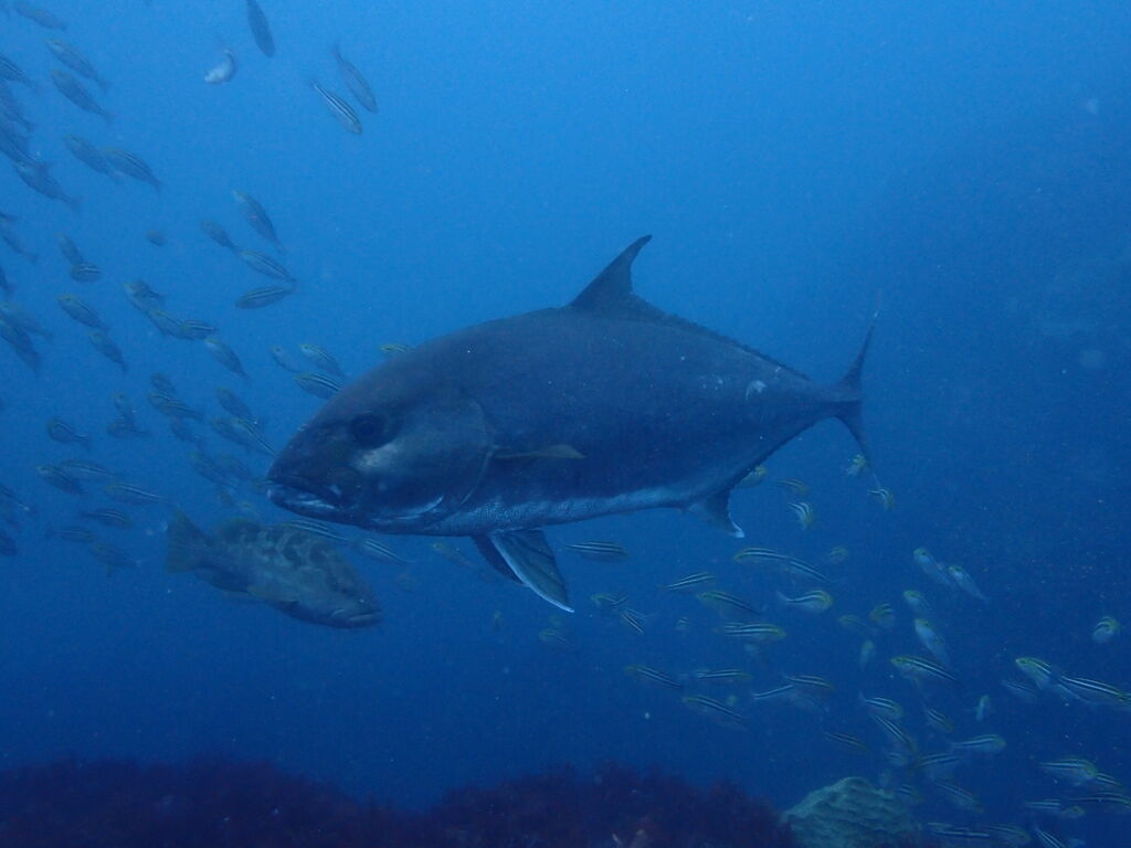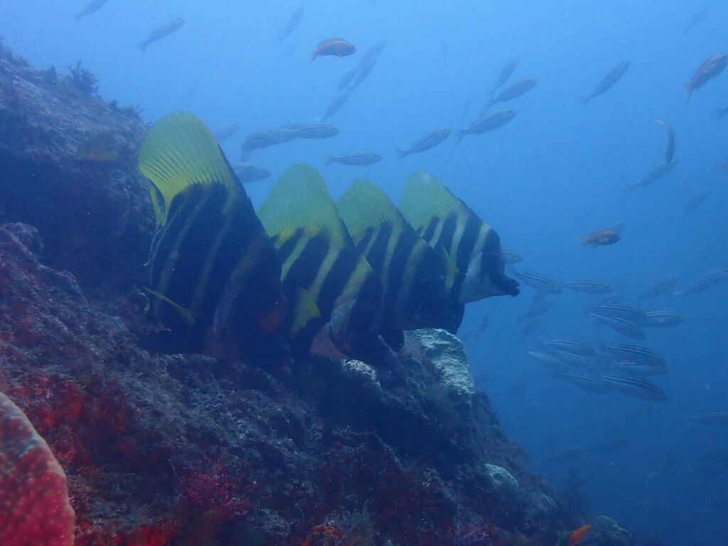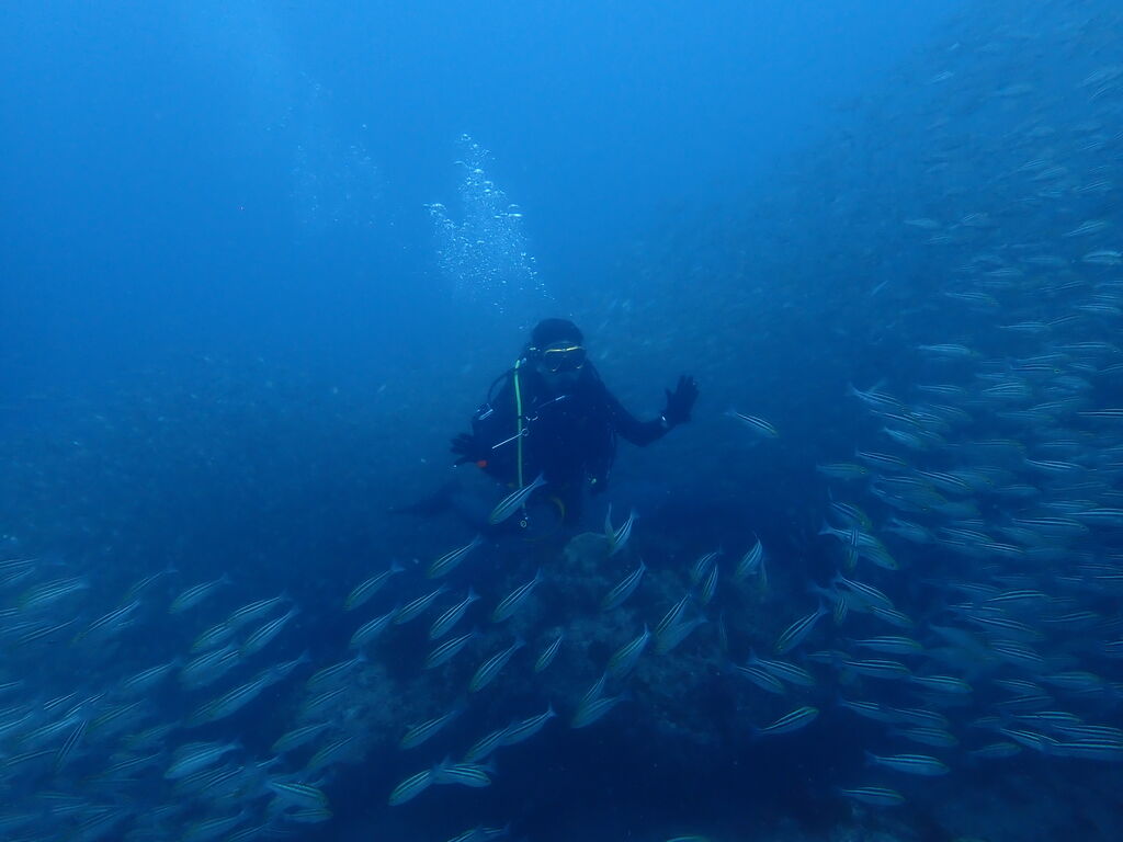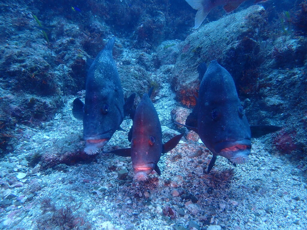 コブダイと一緒にイサキの群れを鑑賞します。