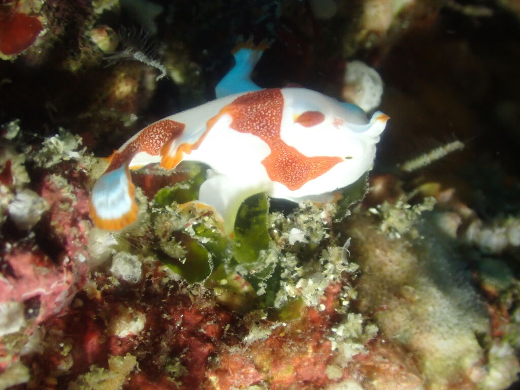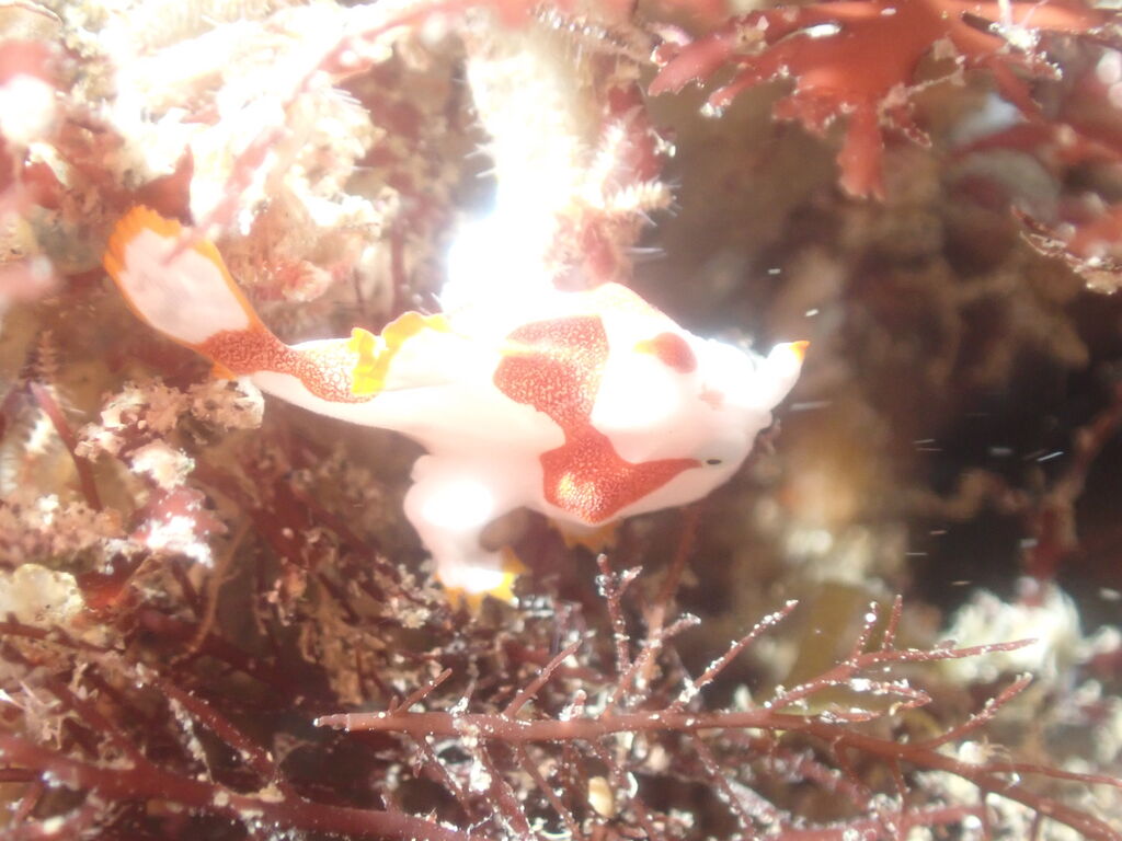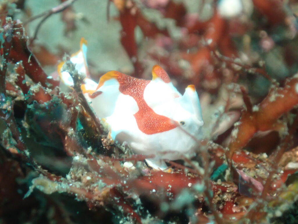 岩を観察すると、サメジマオトメウミウシやニシキウミウシの幼体、ミツイラメリウミウシなどが居ました。