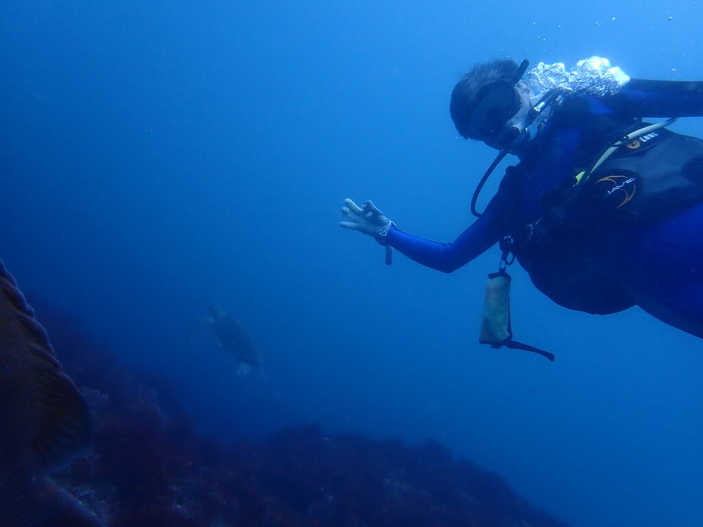 潮は強いですが、視界は真っ青!
