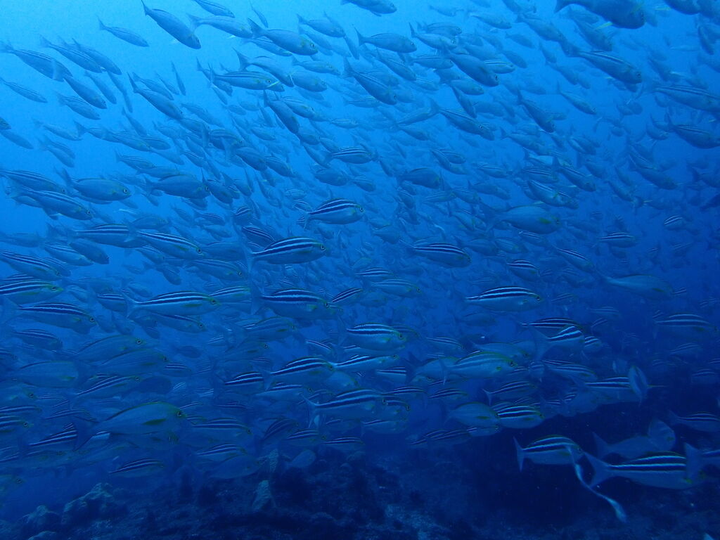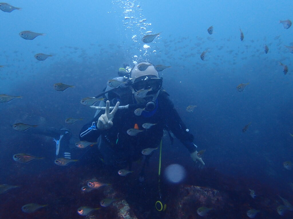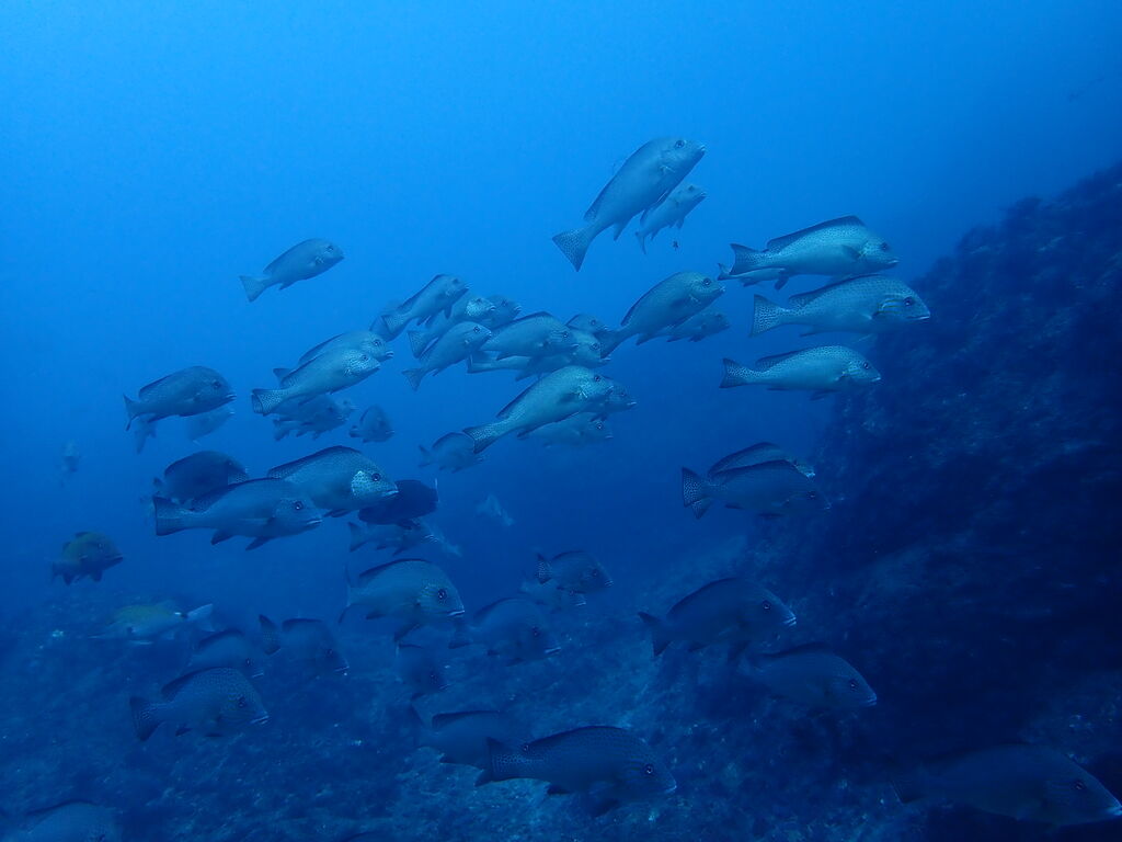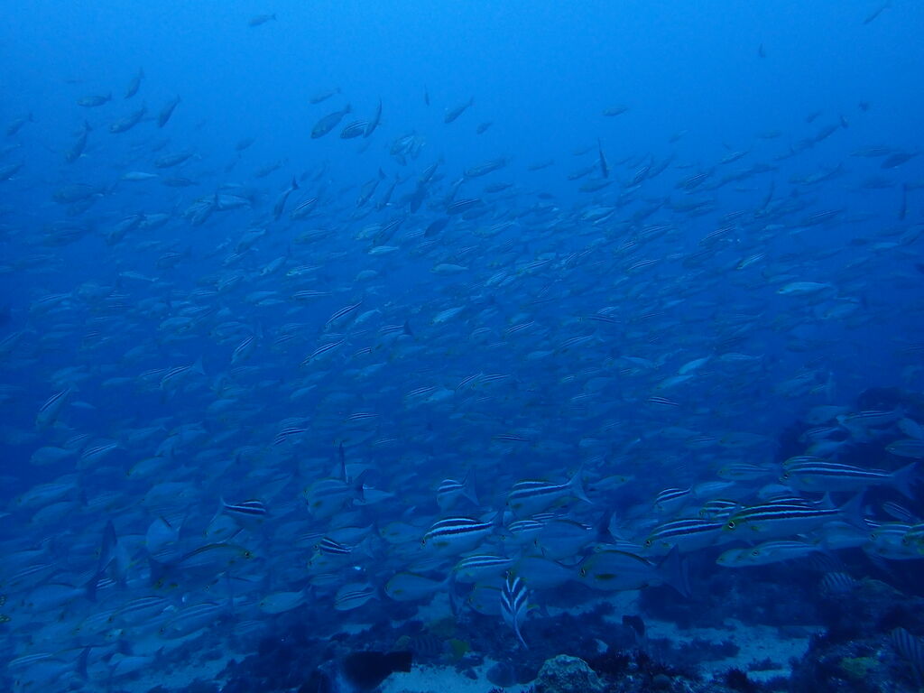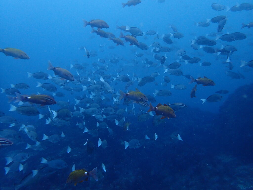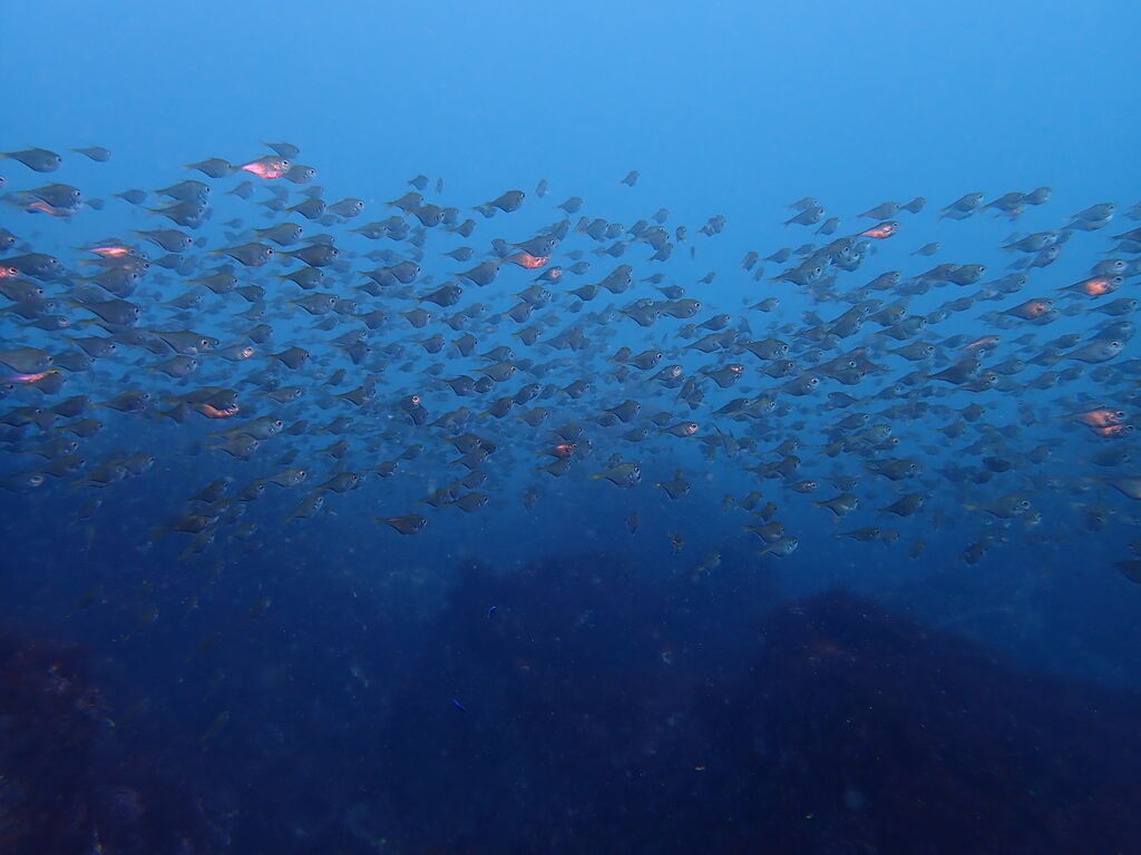 エントリ―してすぐにミナミハタンポの群れ。イサキの群れも入っています。