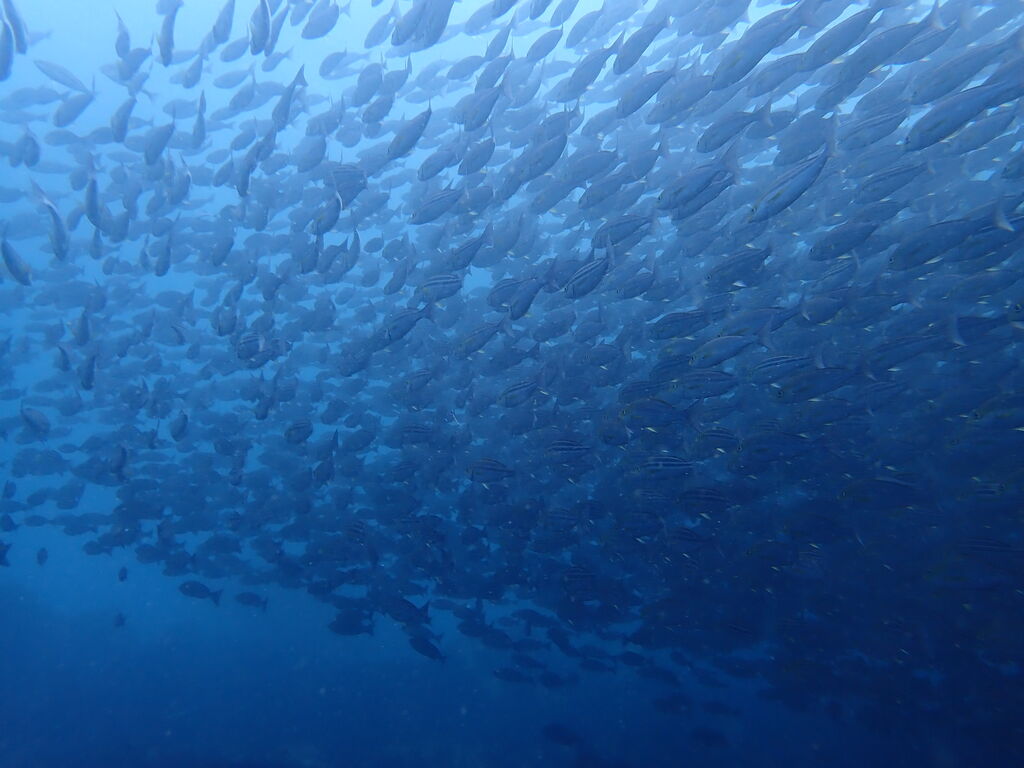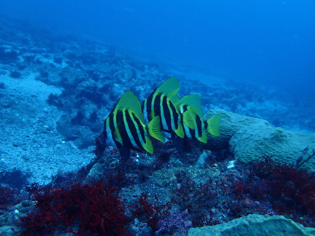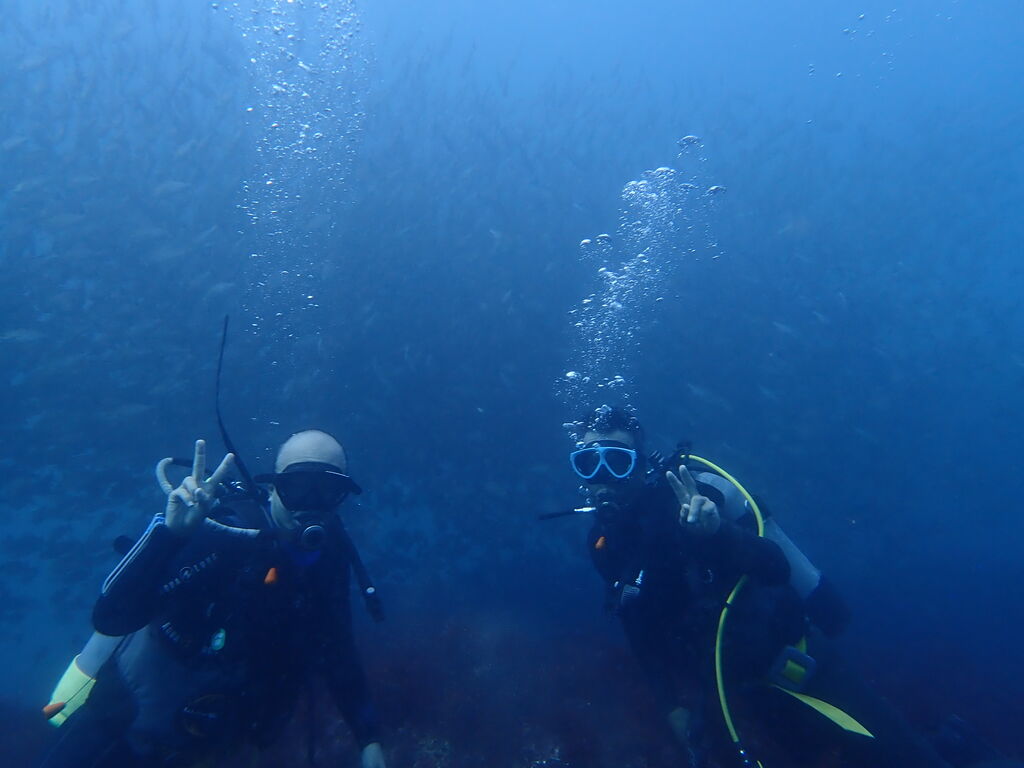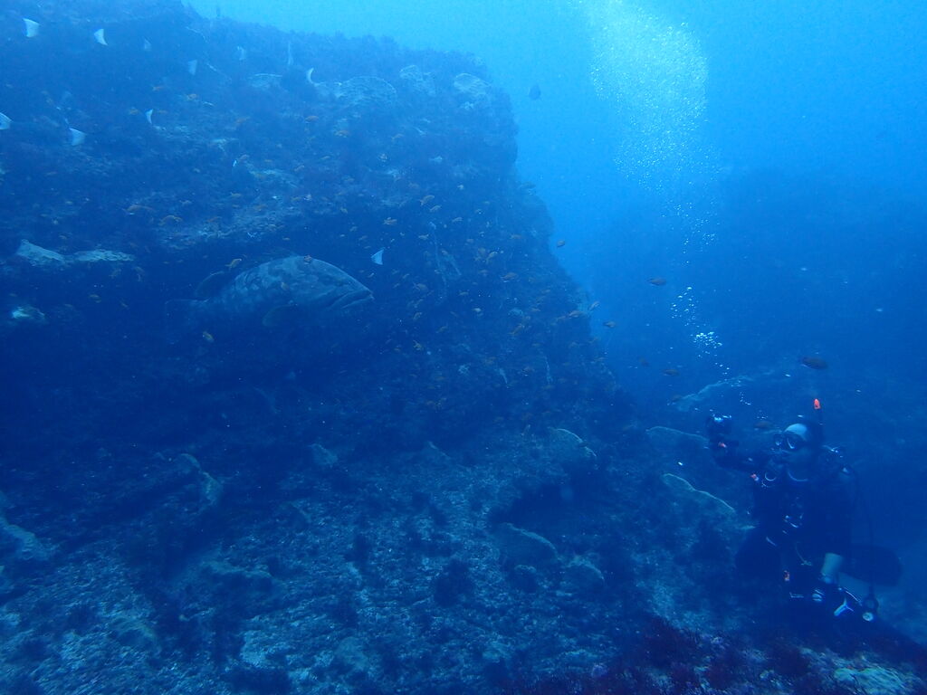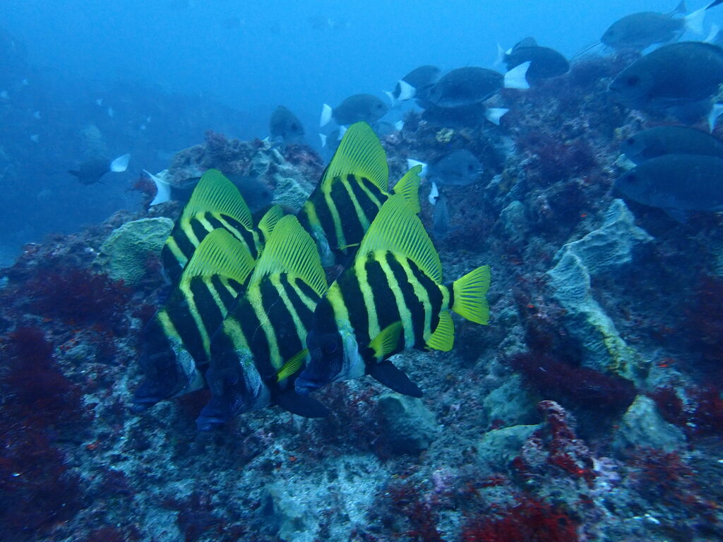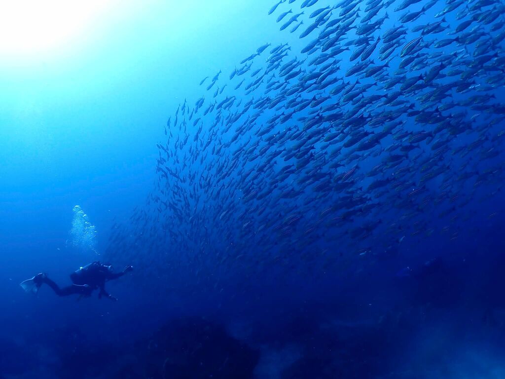 エントリ―してすぐにミナミハタンポの群れ。イサキの群れも入っています。
