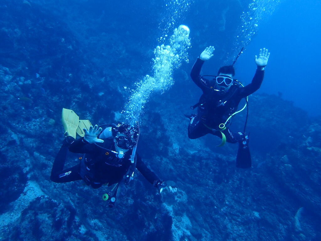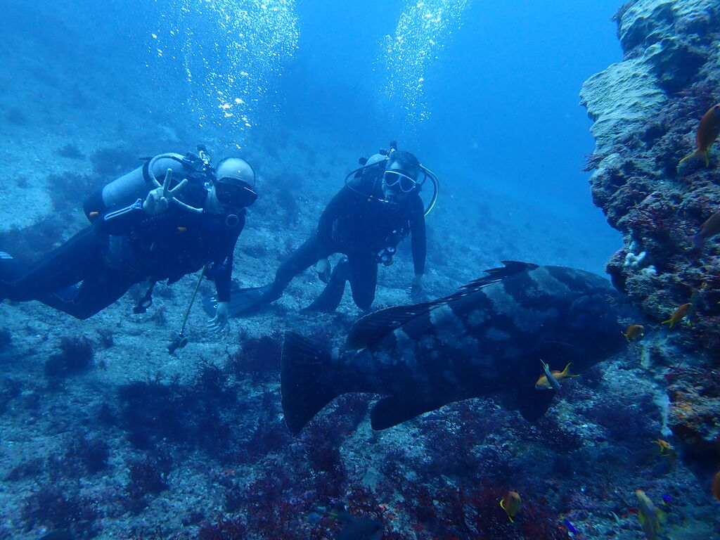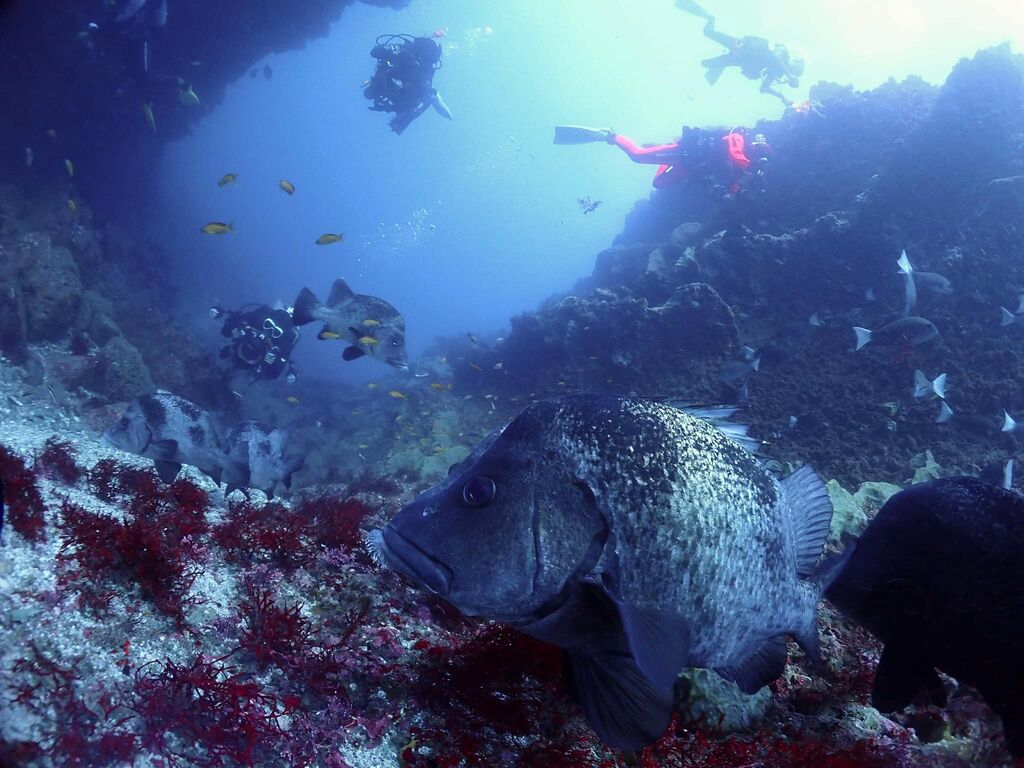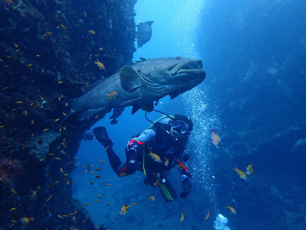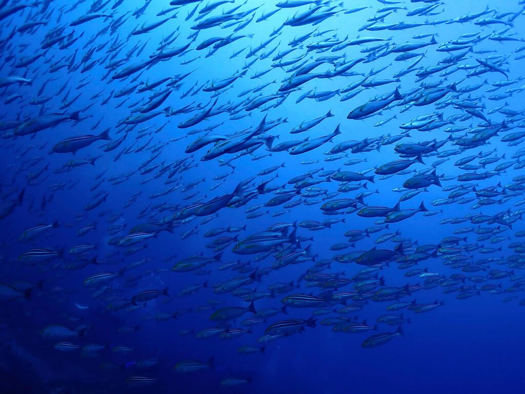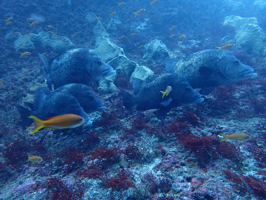 エントリ―してすぐにミナミハタンポの群れ。イサキの群れも入っています。