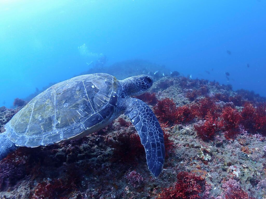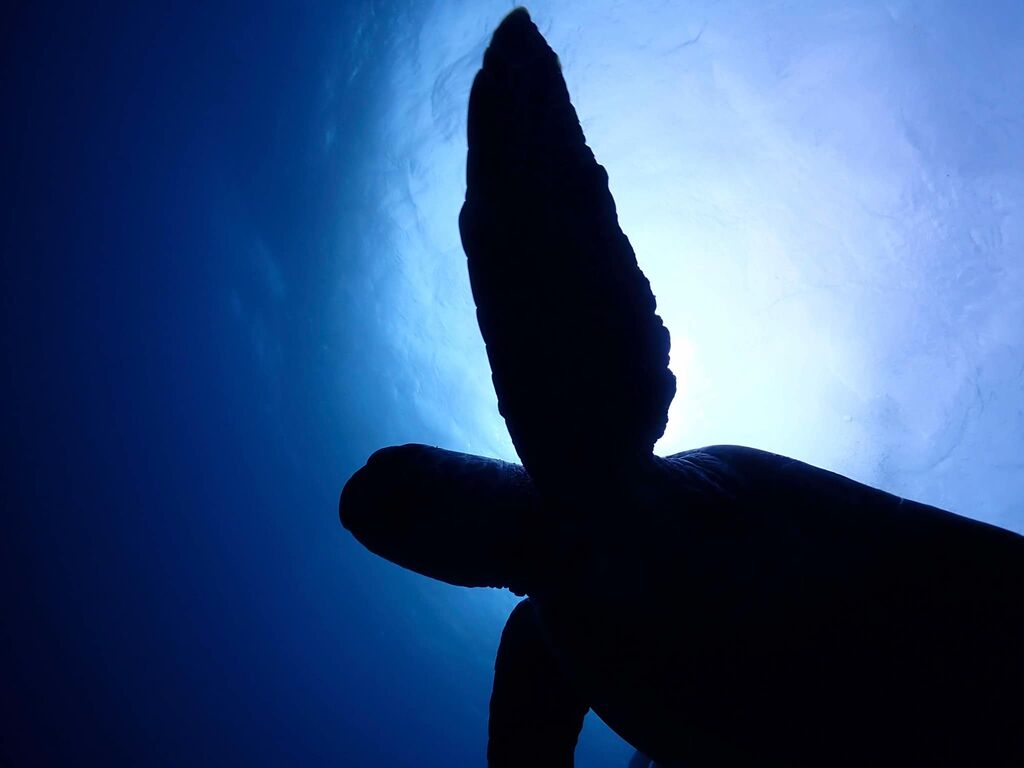 沖に出ていくとかなり流れていました。 小ぶりなアオウミガメと巨大なアオウミガメ!