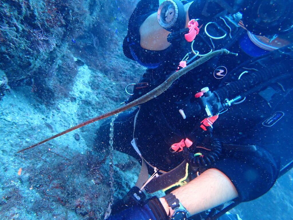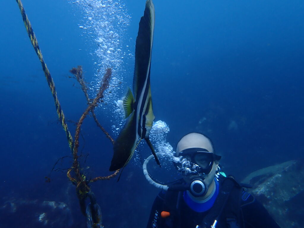 ブイに戻ると、ツバメウオがいました!