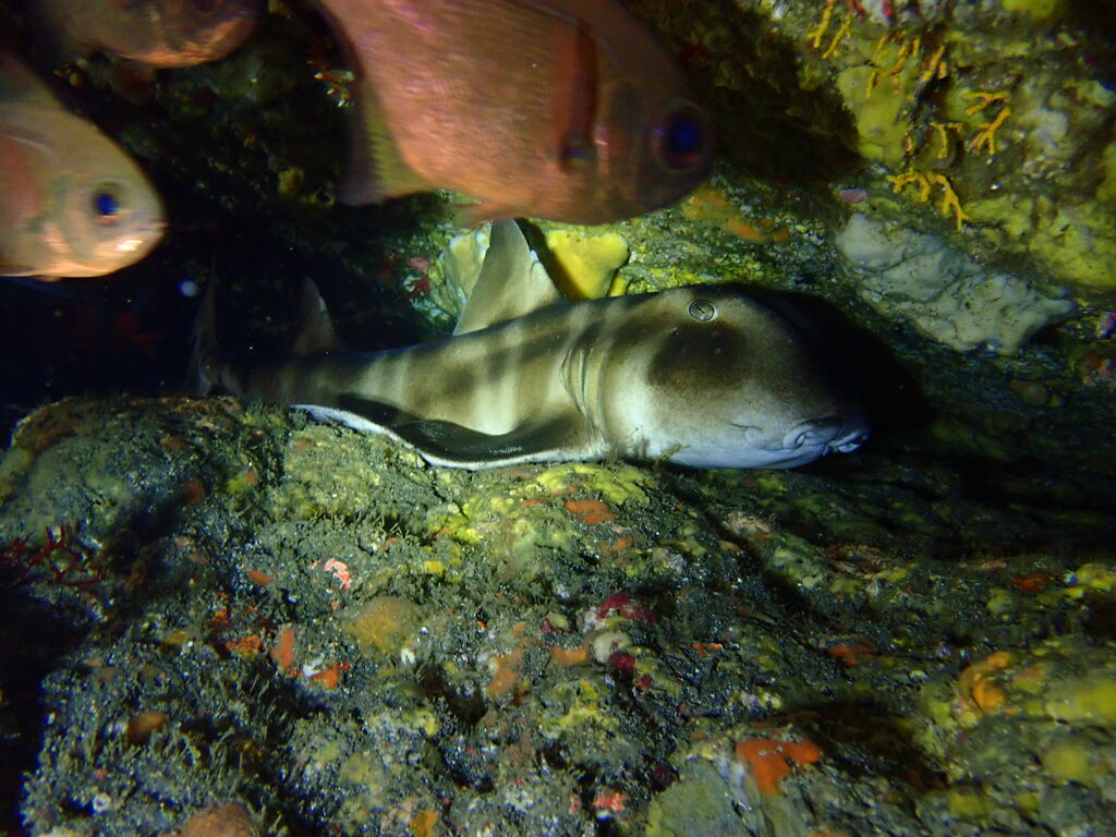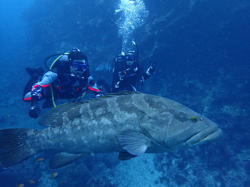 その周りにはワラサが数匹泳ぎ回っていました。