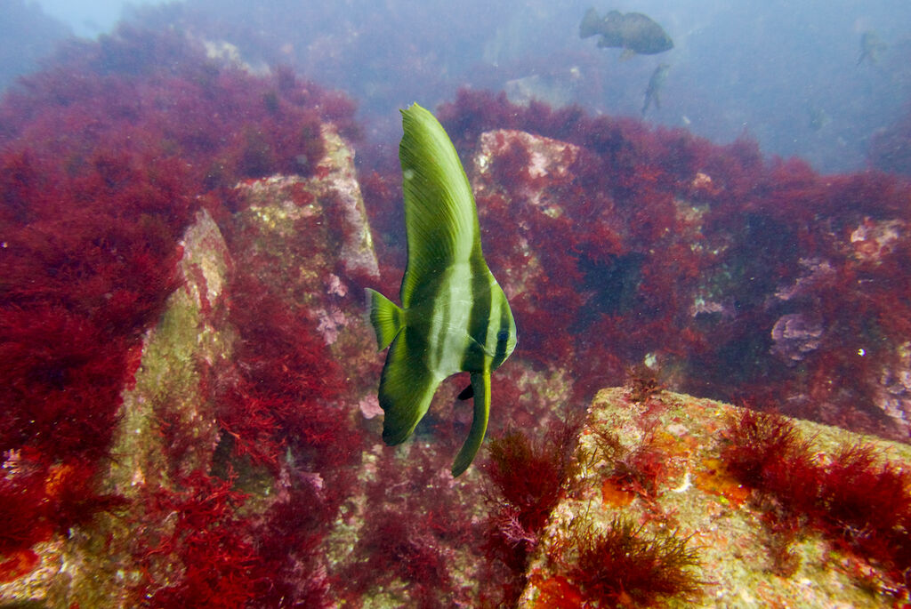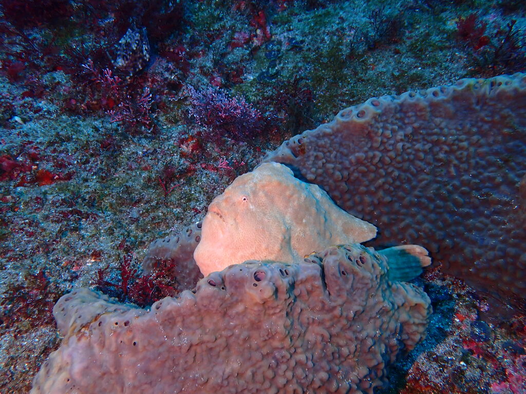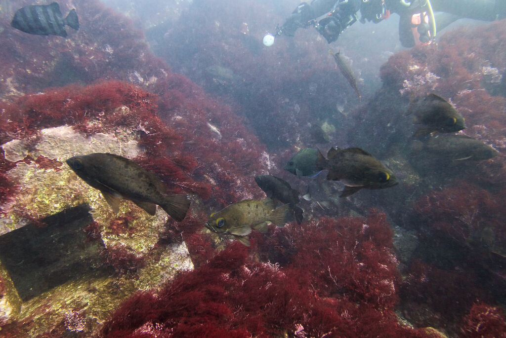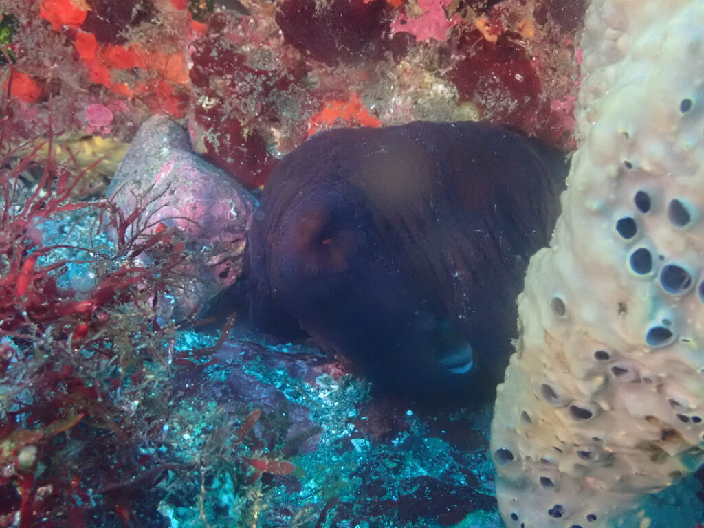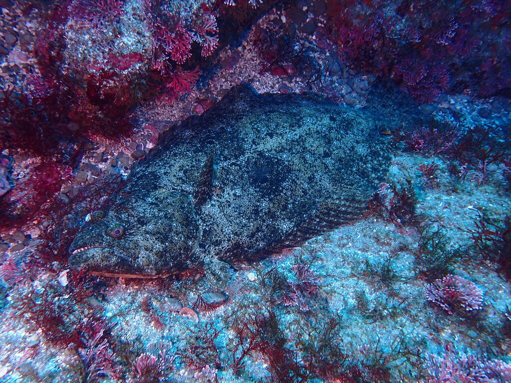 岩陰にクエが2匹☆ 沖にはうっすらイサキが群れていました!