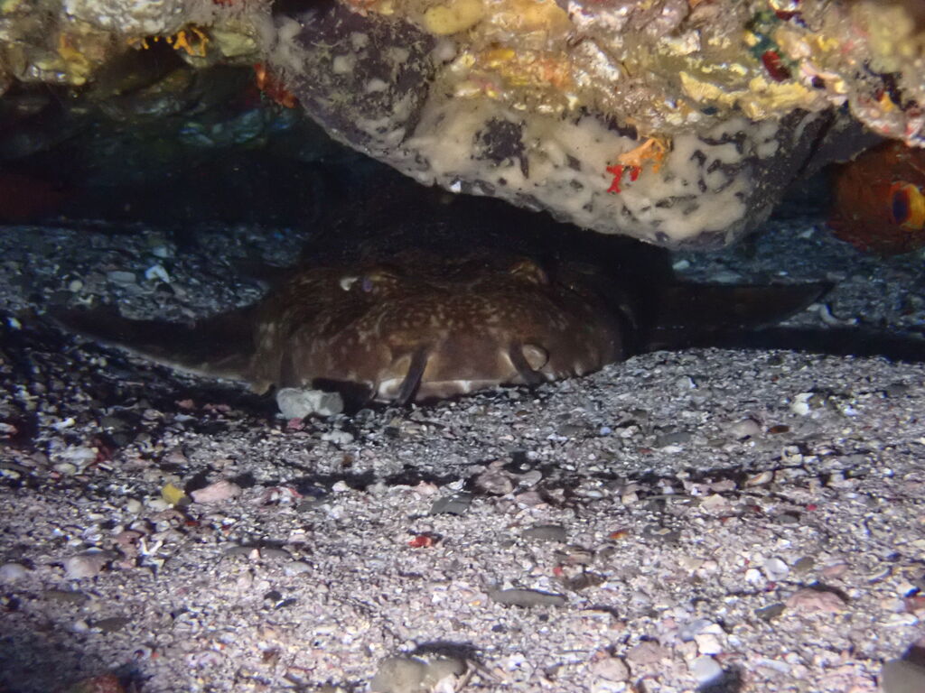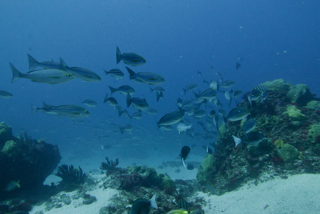 トビエイの根にはキンギョハナダイやササスズメダイがいっぱい。