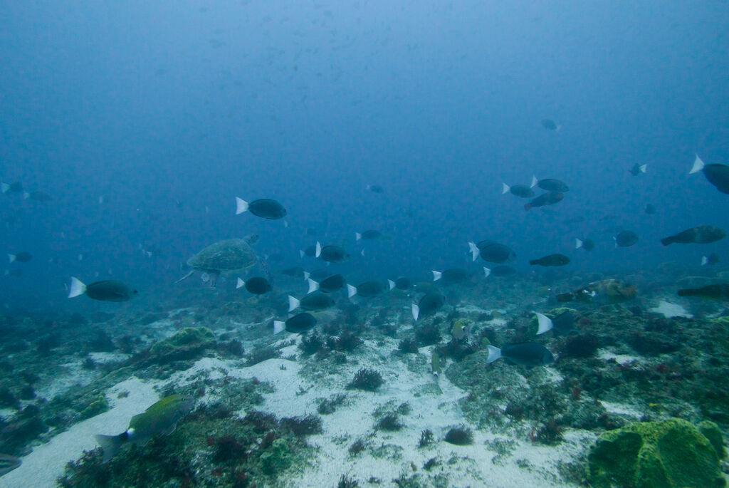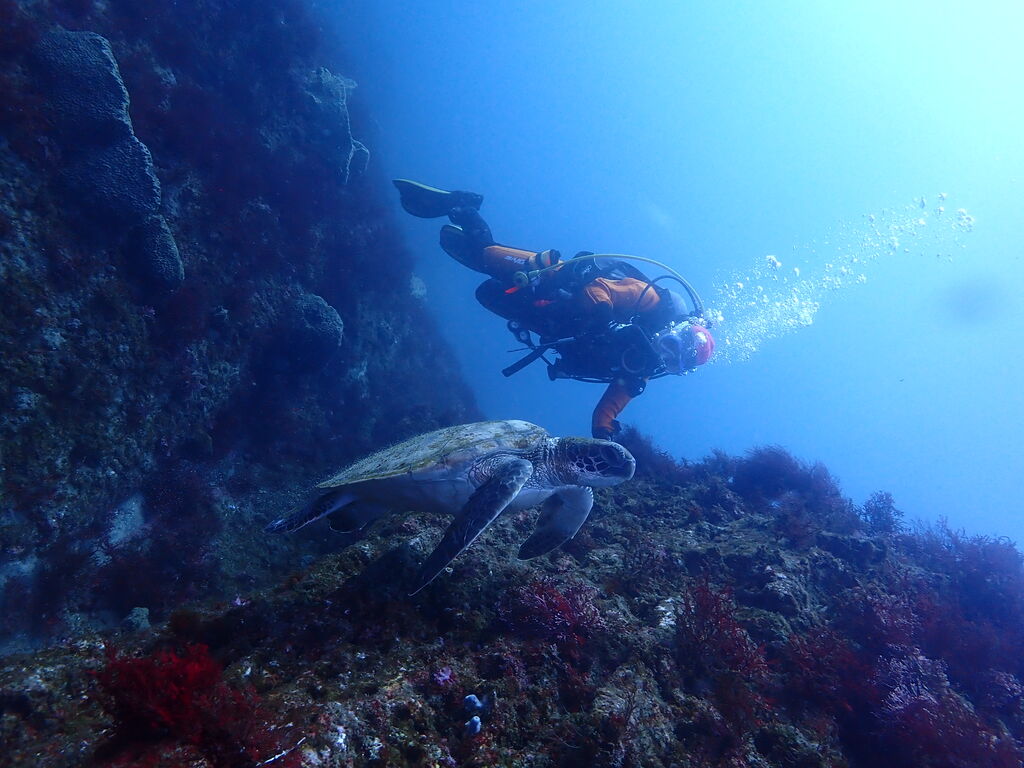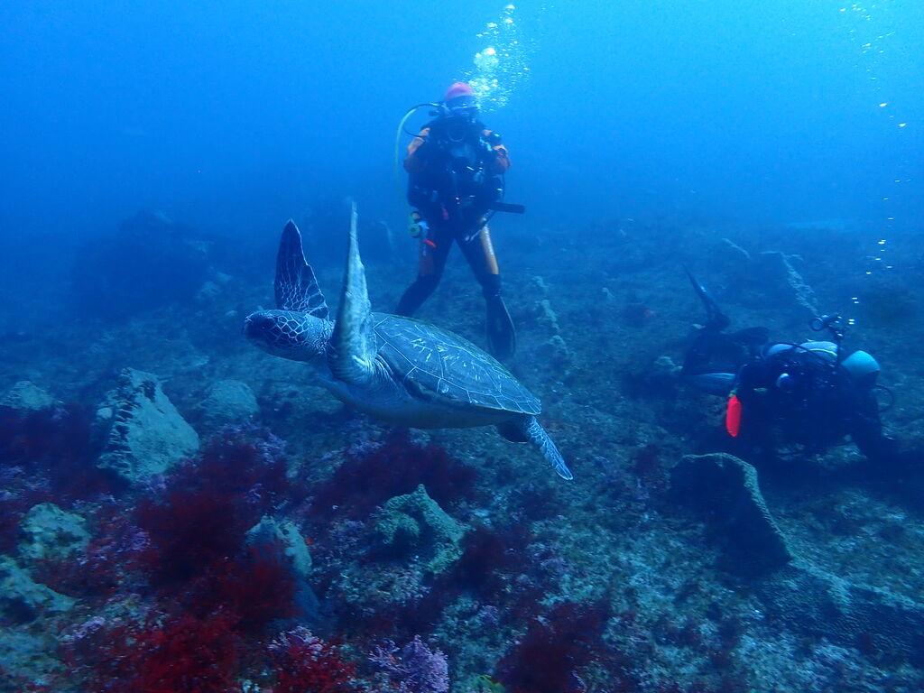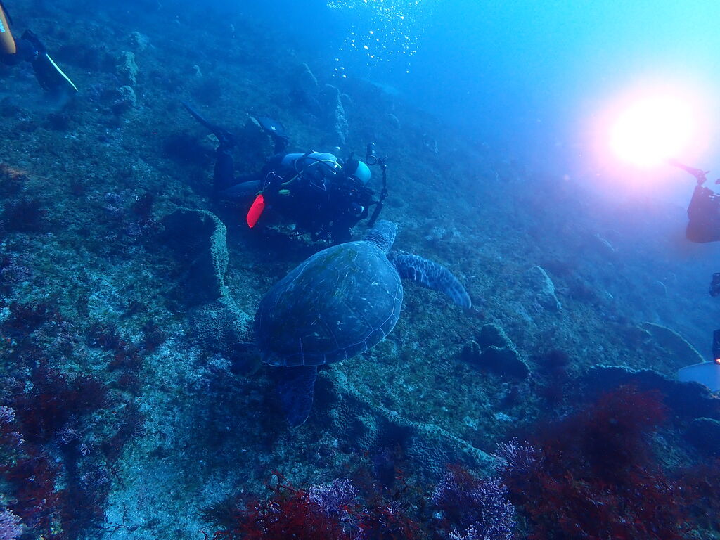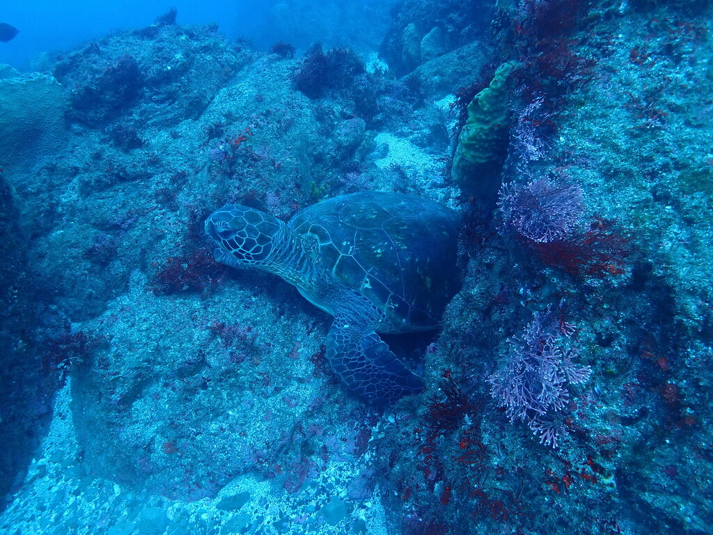 サメ穴にはオオセも居ました。 西の山に戻ると、アオウミガメが2匹泳いでいましたよ。