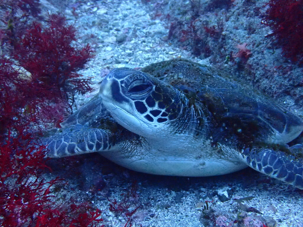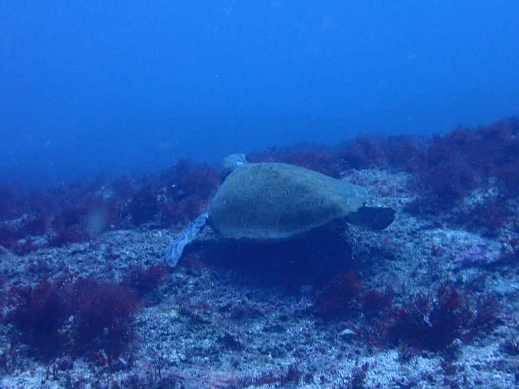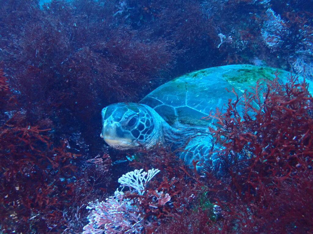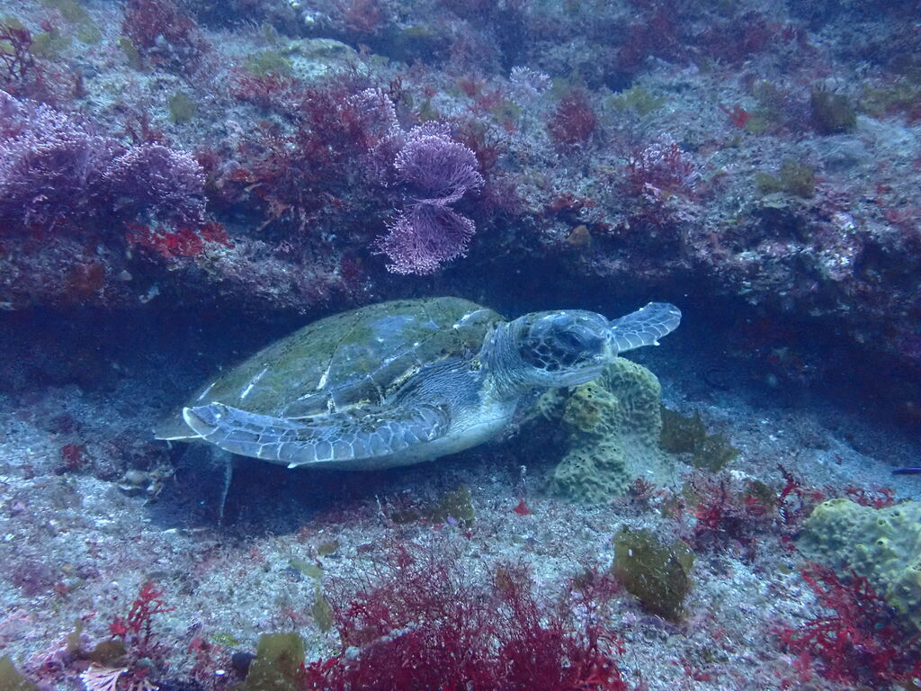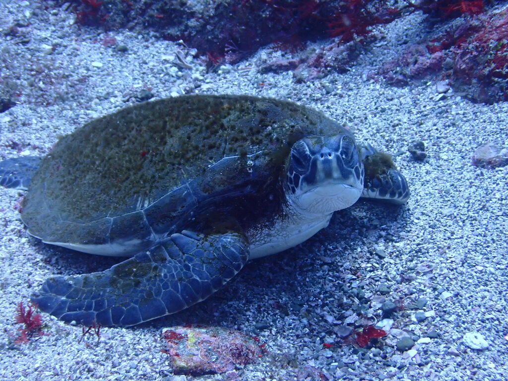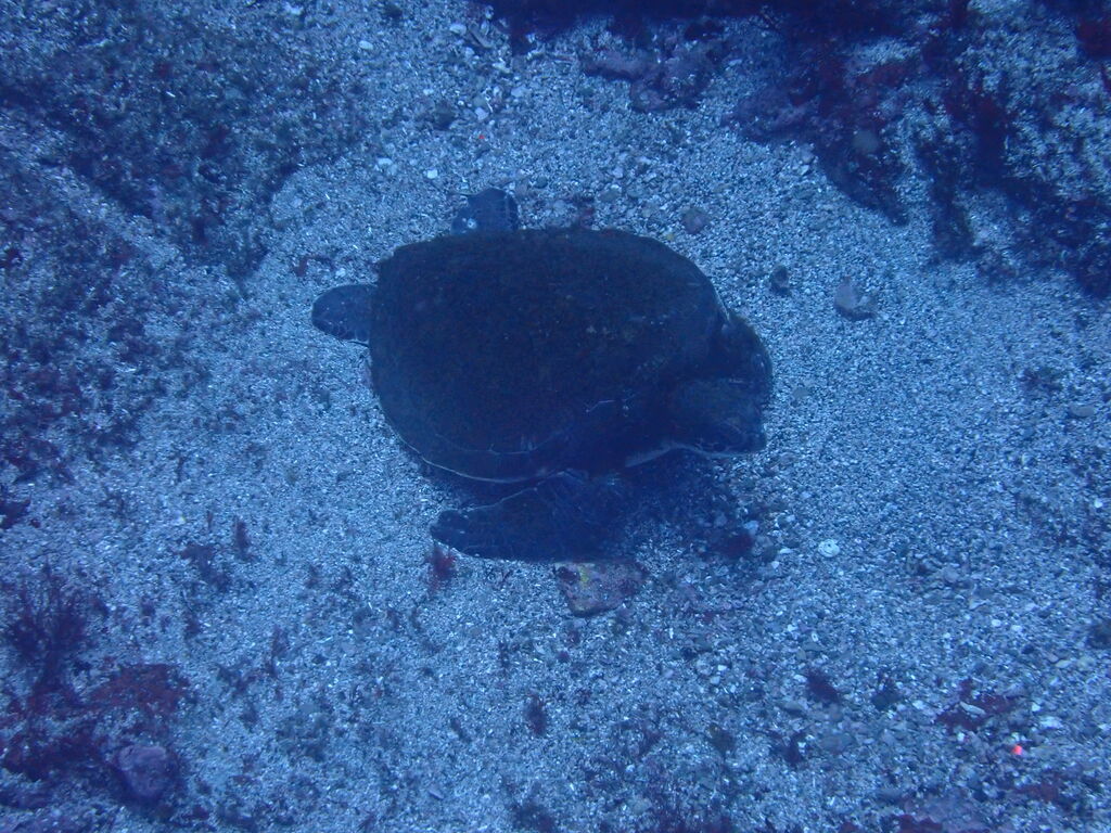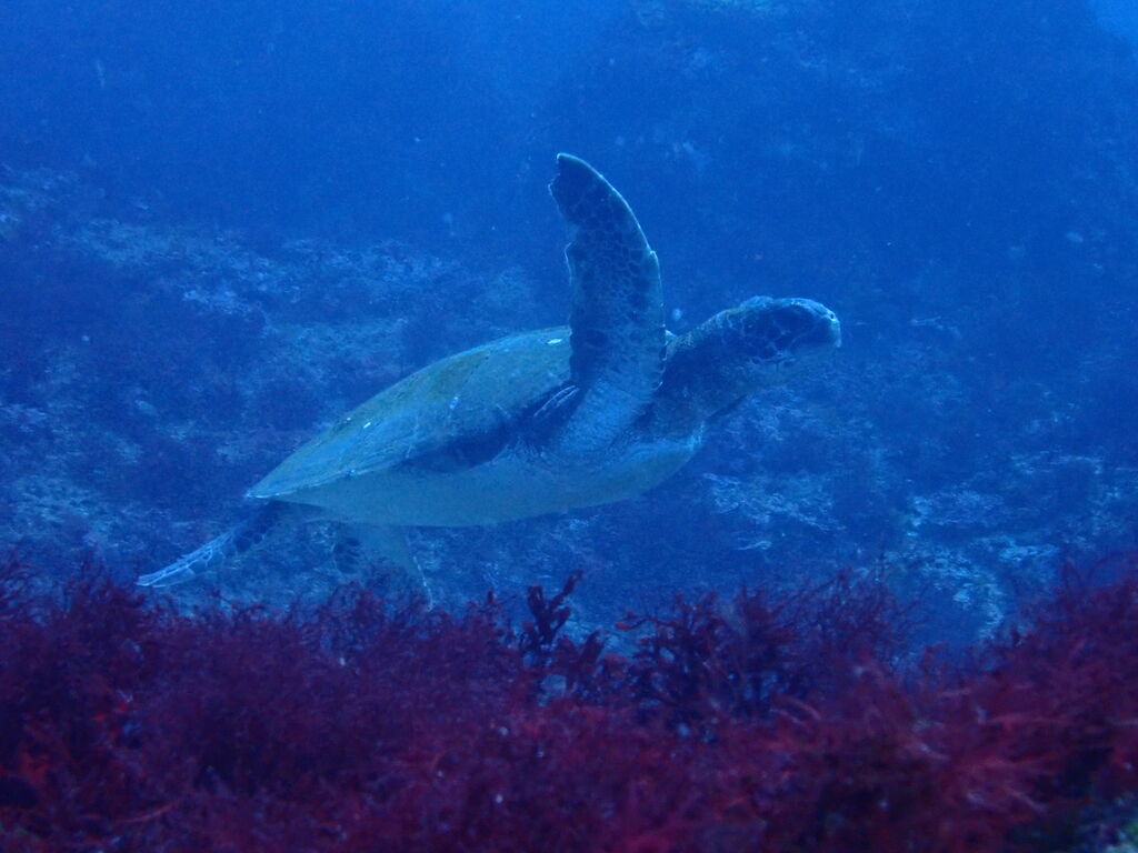 西の山の西側でも小ぶりのアオウミガメ。