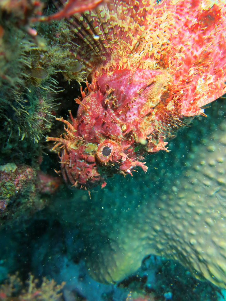 今度は南周りです♪ イサキを追いかけて根の裏へすると大きなクエが5〜6匹ひき集まっていました。とっても雄大に泳いでいます!離れ根にも大きなクエがいて。ダイバーをみつけるとゆっくりよってくるんです、かわいいですね☆中層にはまたイサキがぐっちゃり群れています。マダイもかなりいっぱいいましたね