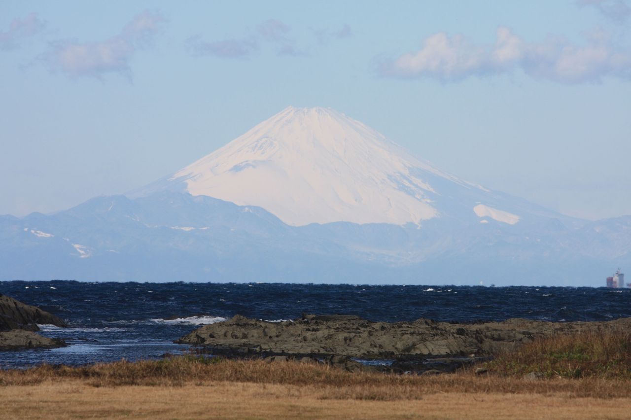 ☆雪で真っ白になった富士山と、伊豆大島三原山の写真です。