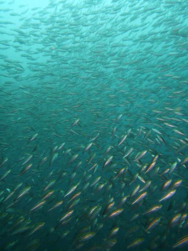 サメ穴は今日もネンブツダイ、キンメモドキの群れで濁ってます。