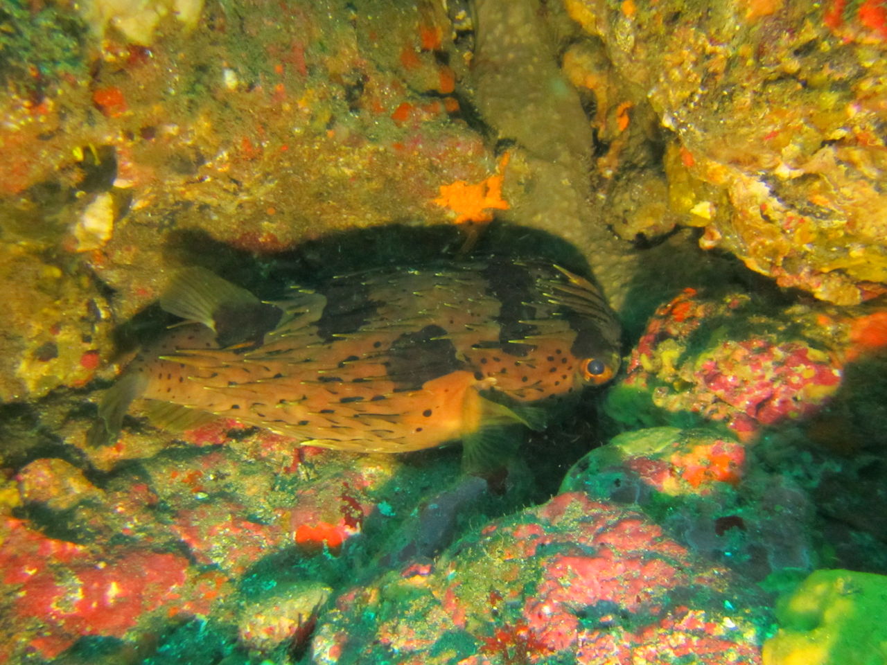 モロコ岩の南側の岩に、スッポリとハリセンボンがはまっていました。