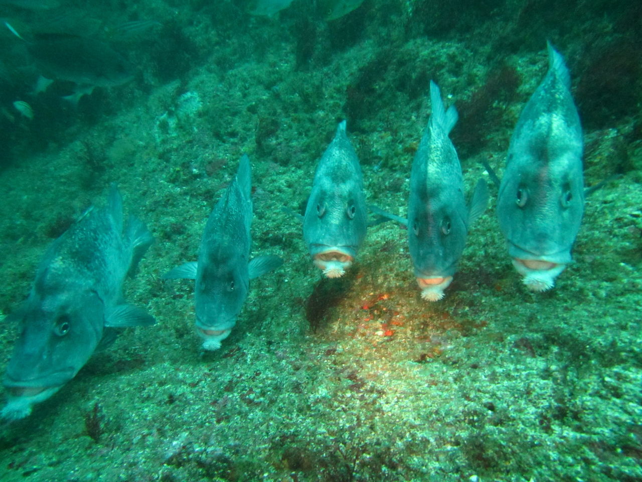 イサキ、キンギョハナダイとテングサが舞う中頑張って泳いでました。