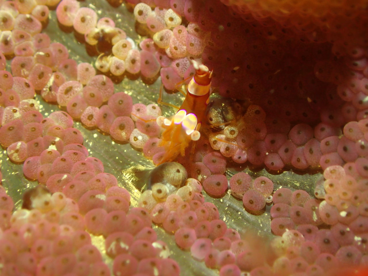 離れ根を越えてトク根へ。グビジンイソギンチャクにイソギンチャクモエビが3匹隠れていました。