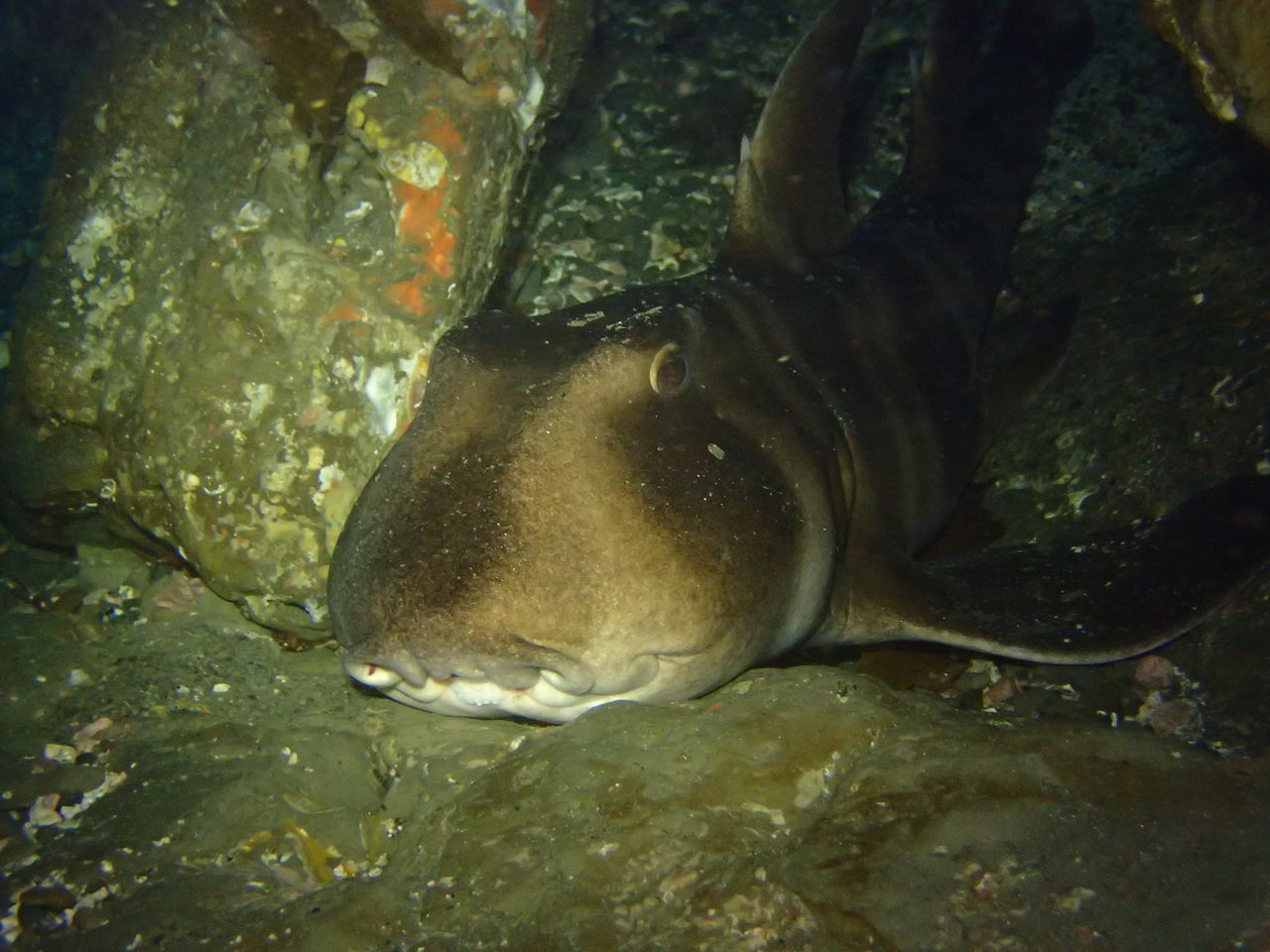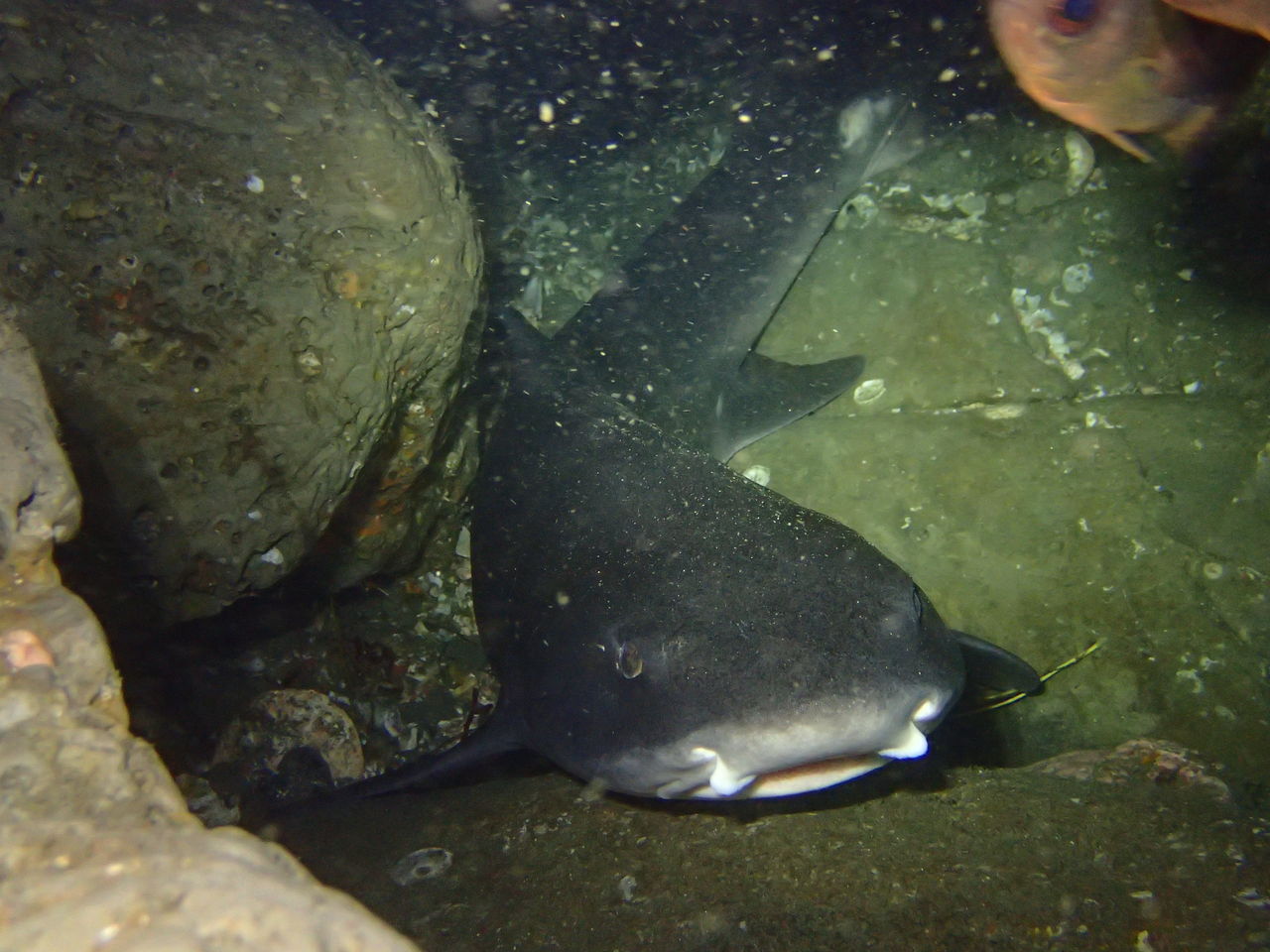 その後アナゴ岩からサメ穴へ。 サメ穴にはネコザメやドチザメが入っていました☆ テングダイが4匹と3匹のグループで泳いでいました。