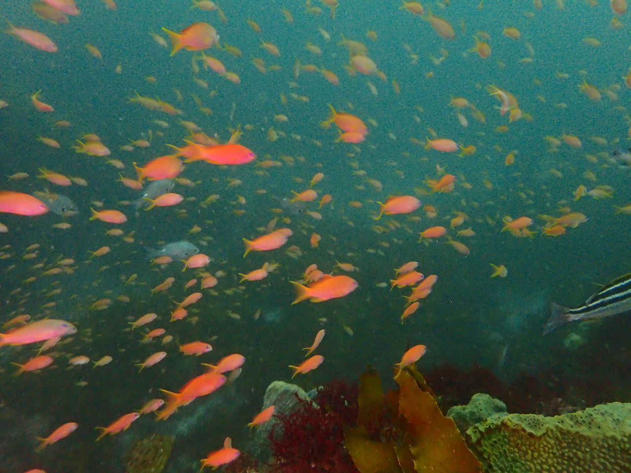 昨日のシケの影響でやや白っぽいです。 モロコ岩にはキンギョハナダイがいっぱい!