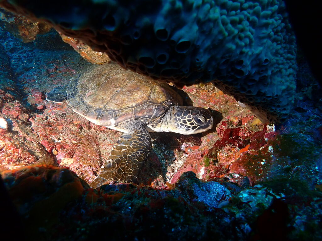離れ根ではアオウミガメが休憩していました。